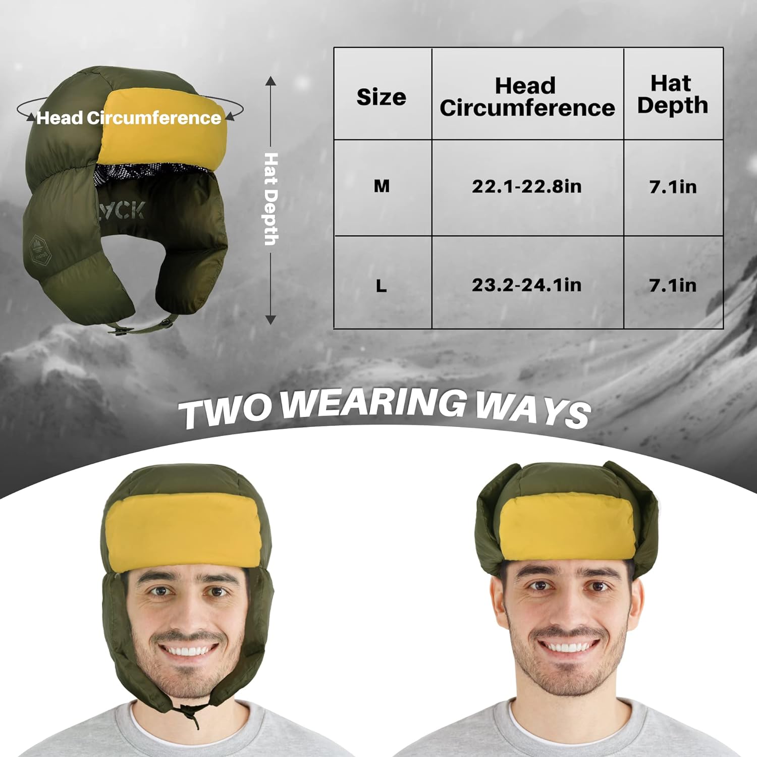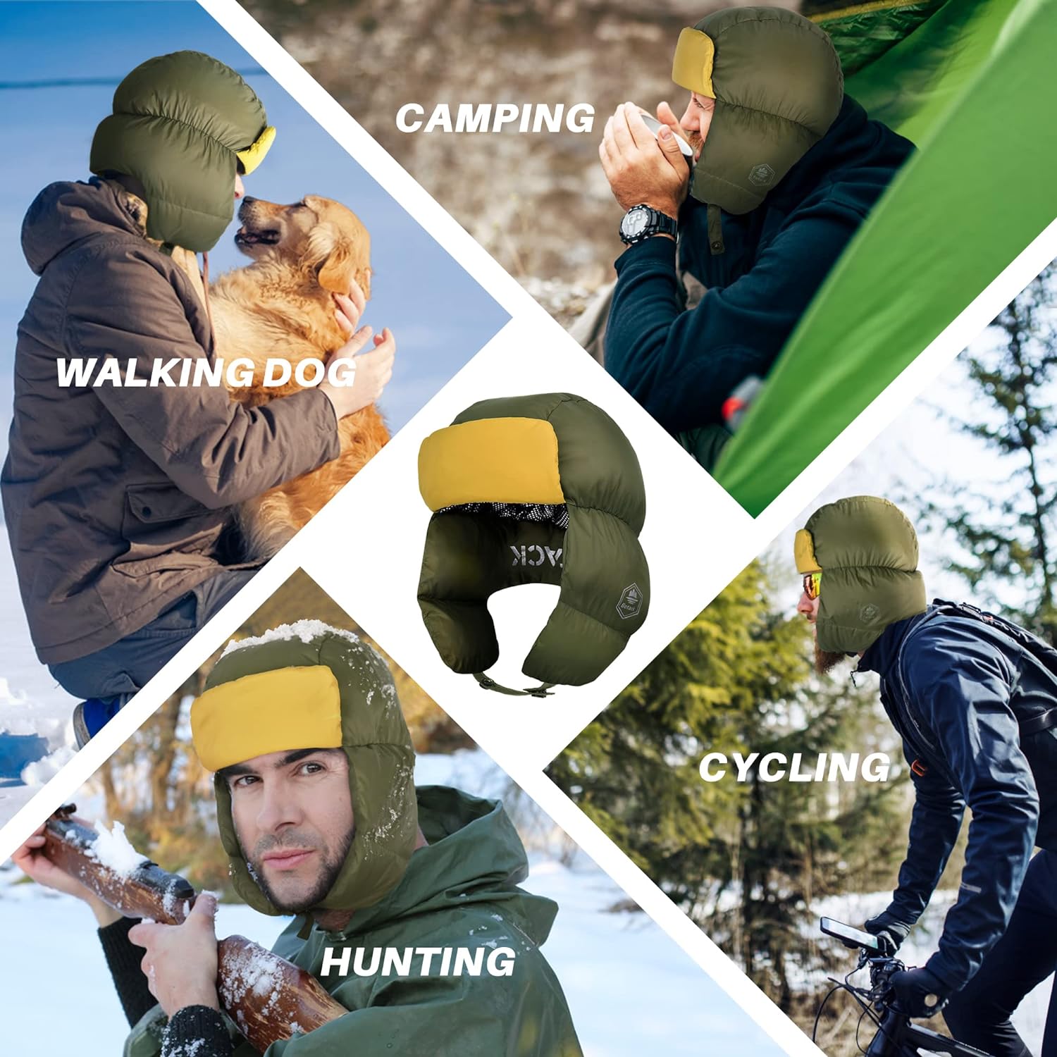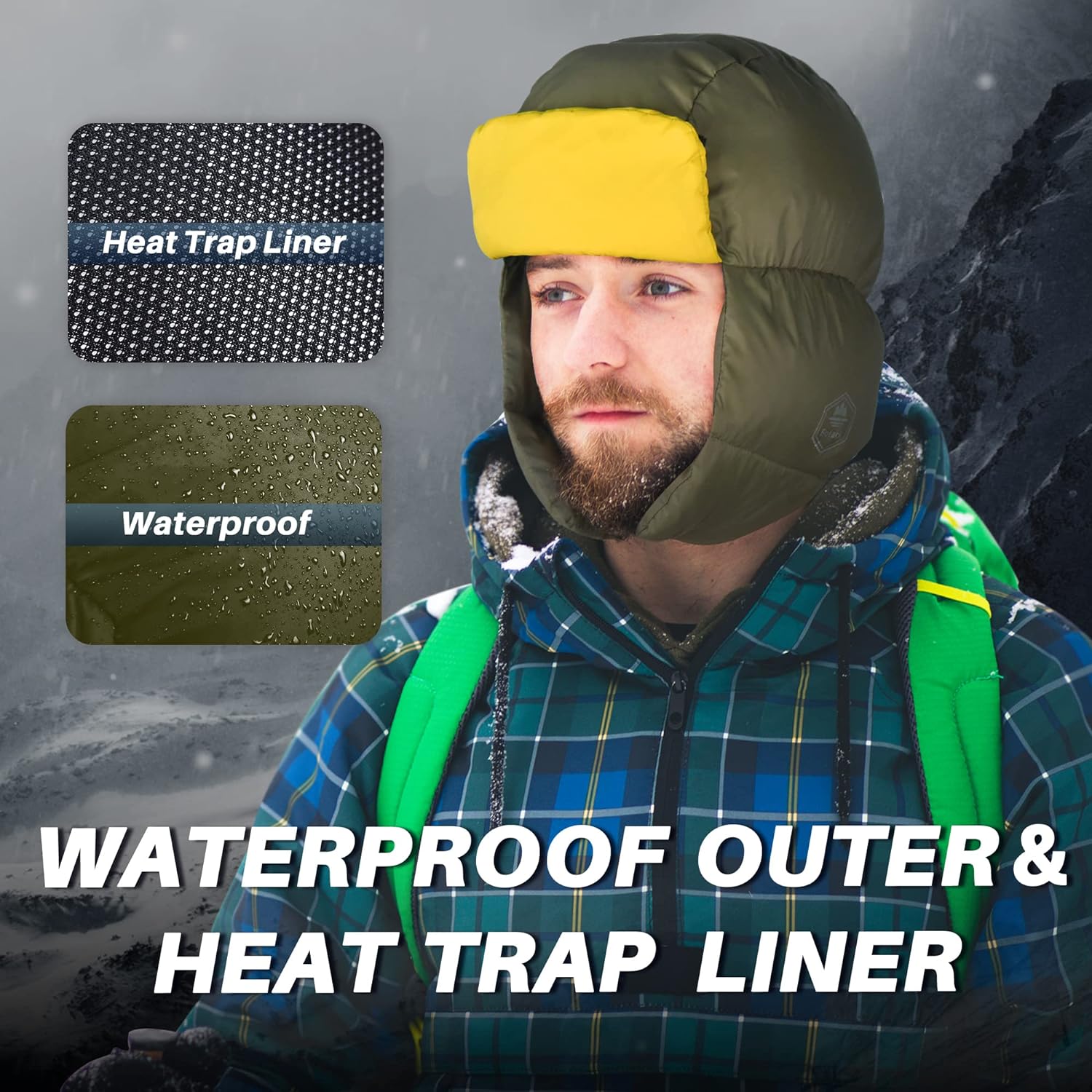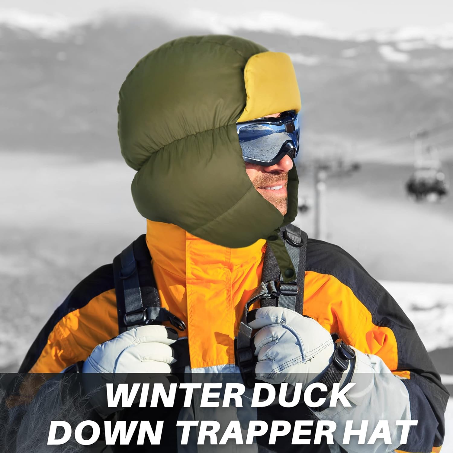 Stay Cozy in Extreme Cold: Men's Duck Down Trapper Hat with Waterproof & Windproof Features for Winter Hunting, Camping & Motorcycling