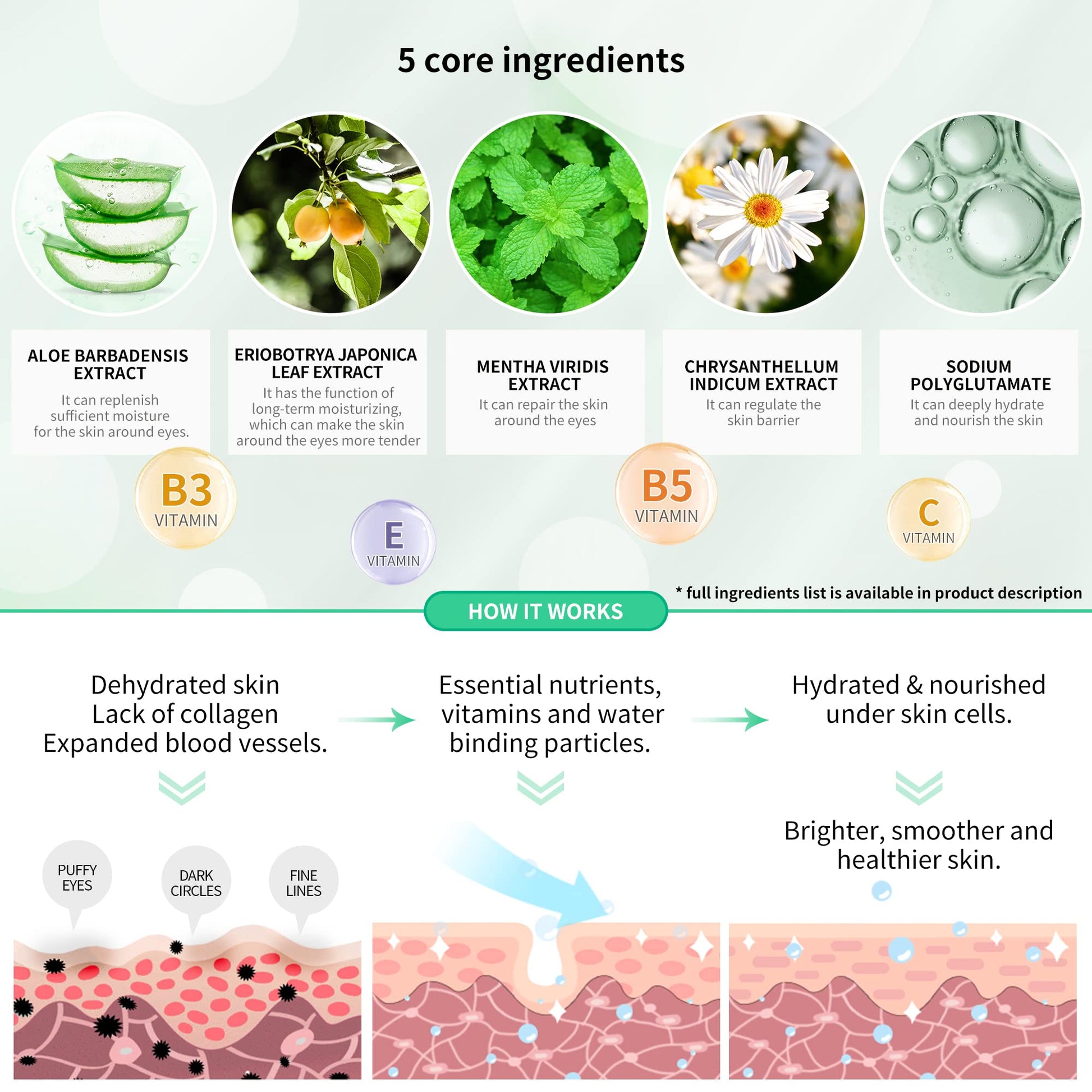 Discover a transformative experience for your under-eye skin with our innovative gel pads. Dive deep into the world of hydration and anti-aging with a blend of natural ingredients specifically curated to provide enduring hydration, ensuring a reduction in wrinkles, fine lines, and under-eye puffiness. Reveal a visage that radiates youth and vitality.