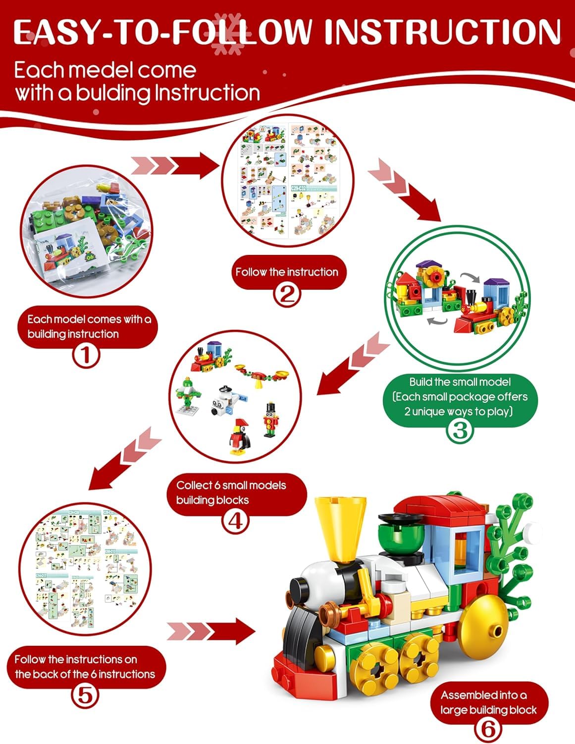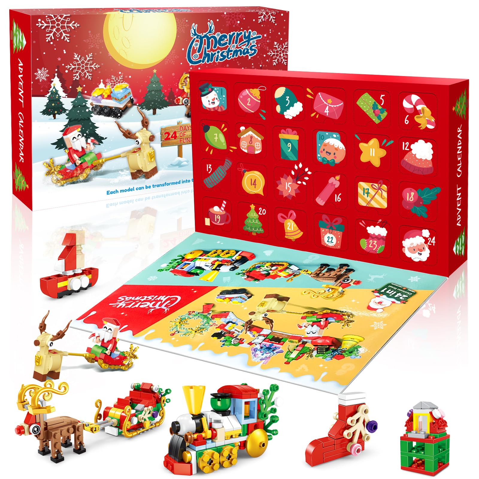 Building Block Advent Calendar for Kids, 24-Day Christmas Countdown with 24 Mini Builds, Combine into Larger Creations, Santa Train Elk Pieces, Ages 6+