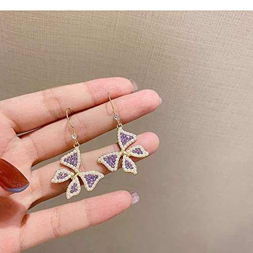 - 🎁Elegant Faux Pearl Butterfly Earrings with Great Purple CZ, Help you Look More Attractive. Match with your Beautiful Dress.