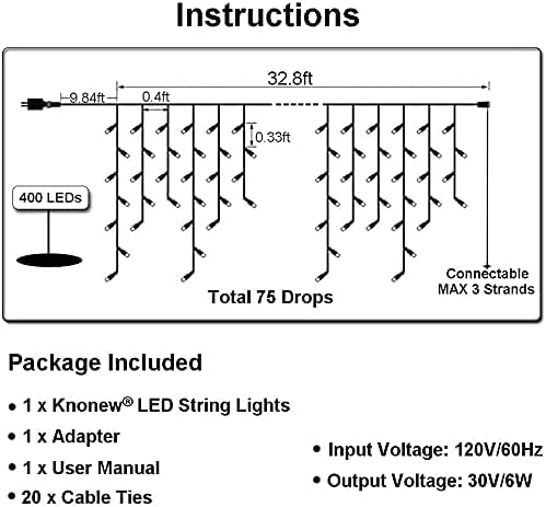 - 【Easy to Install & Safer】Keep these up all year, they case a perfect warm soft surrounding light for our Eave, Patio, Deck, Fence, Garage, Trees, and more. Near perfect length to wrap the eave of the front porch, Hammered staples every two feet or so and use the zip ties to attach the strand and had just the right number to tie it up. UL Listed Plug and Low-temp LED bulbs ensures safe to touch even after long time use. Allows you to save time and effort. Safer to use!