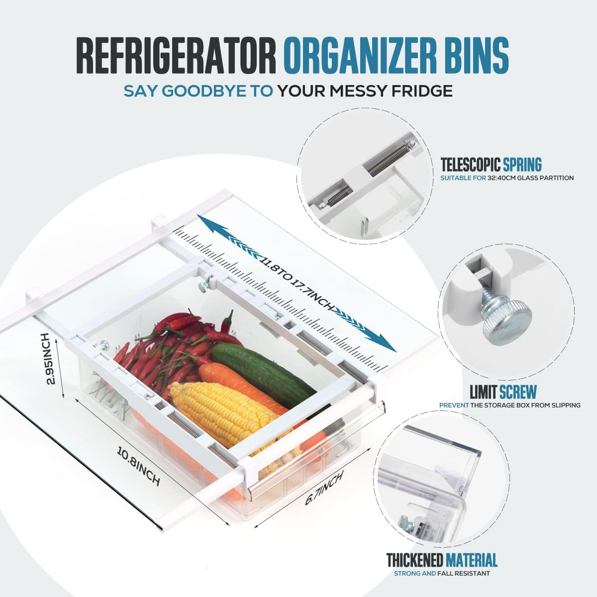 The drawer's depth ensures ample space to accommodate various items: from yogurts, sliced cheese, snacks, and baby products to fruits, veggies, meats, and more. Before purchasing, kindly ensure that your refrigerator partition ranges from 11.8 to 15.75 inches (30~40cm). Also, ascertain that your fridge shelf's thickness does not exceed 0.79 inches and is not slanted or curved downwards.