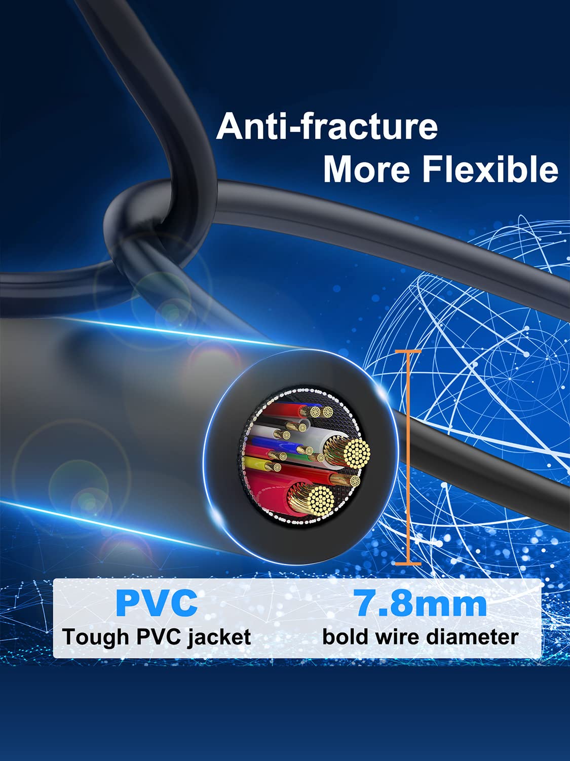 The cable's structure is fortified with a pure copper core, aluminium foil shield, woven mesh shield, and a robust PVC outer cover. Gold-plated RJ45 connectors on both ends enhance connection stability and resist corrosion. Its universal compatibility ensures it works seamlessly with all previous RJ45 cabling and equipment, from Cat5 to Cat7. Whether for gaming, streaming, or heavy-duty networking, this cable provides a lag-free, interruption-free experience.