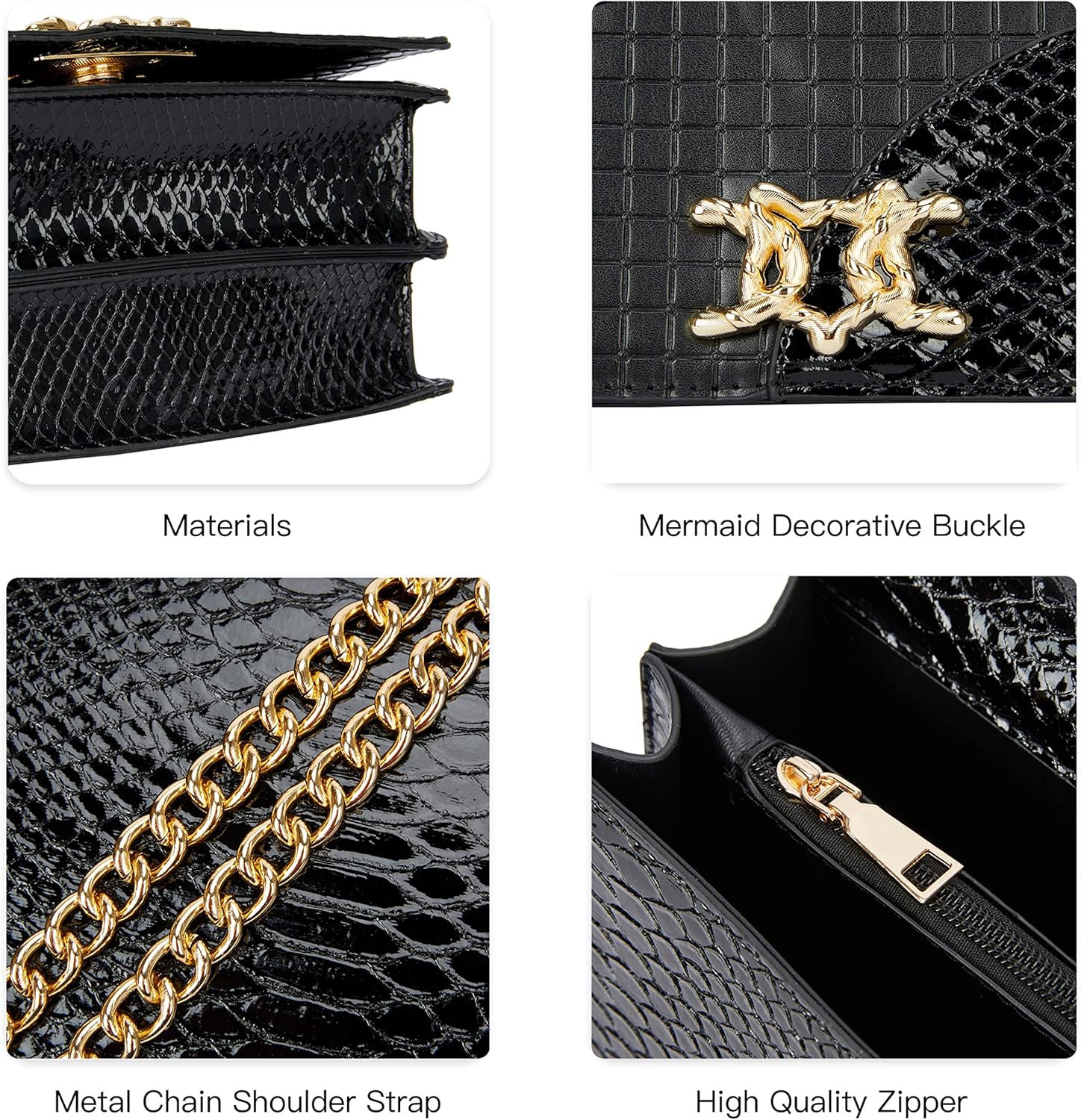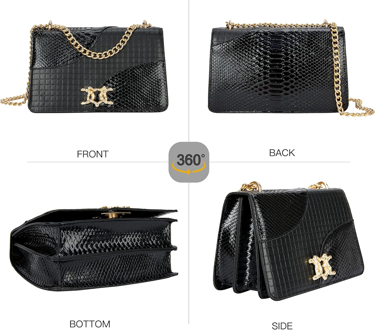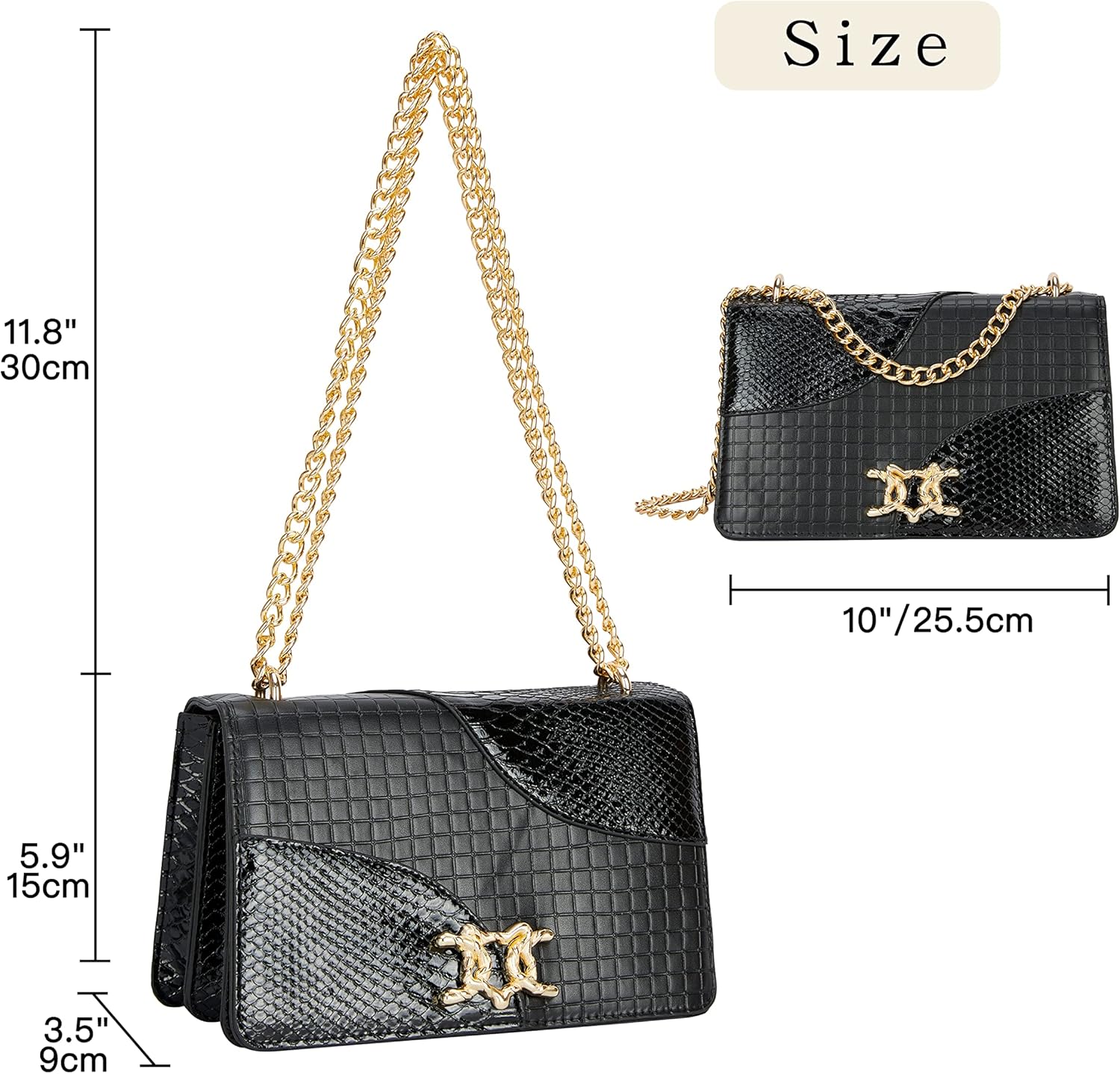 Elegant Black Snake Print PU Leather Crossbody Bag with Gold Chain Strap