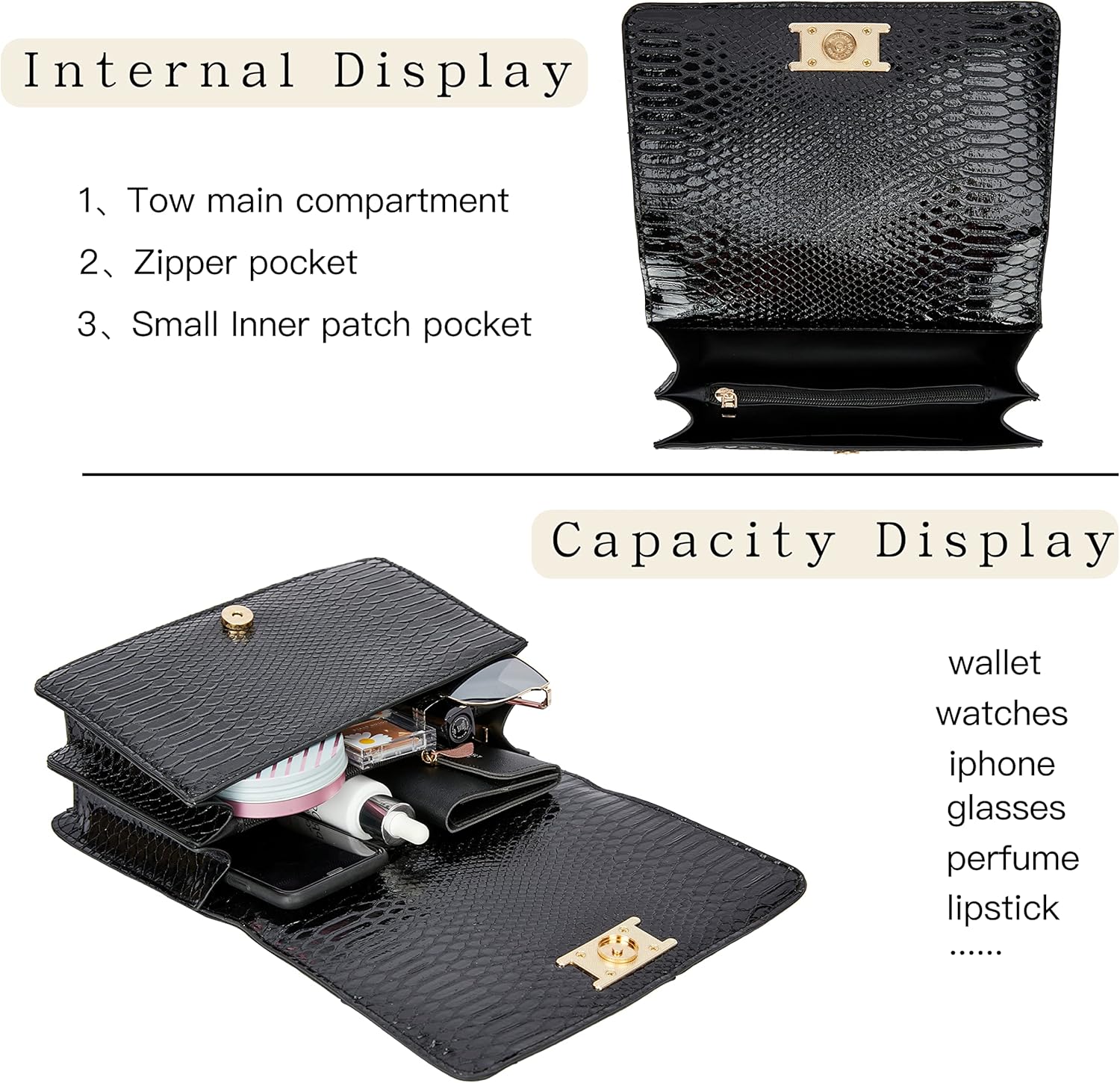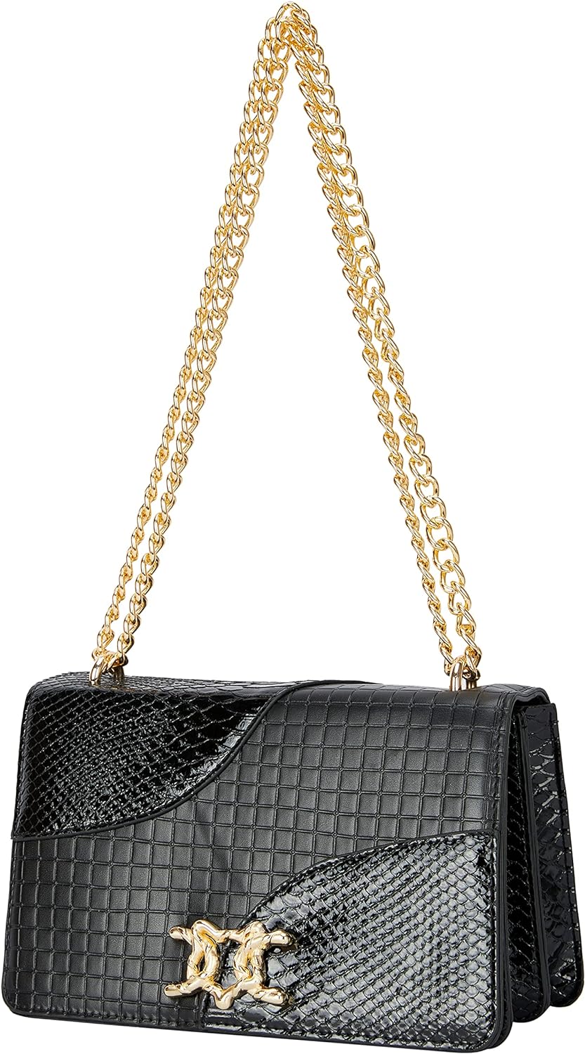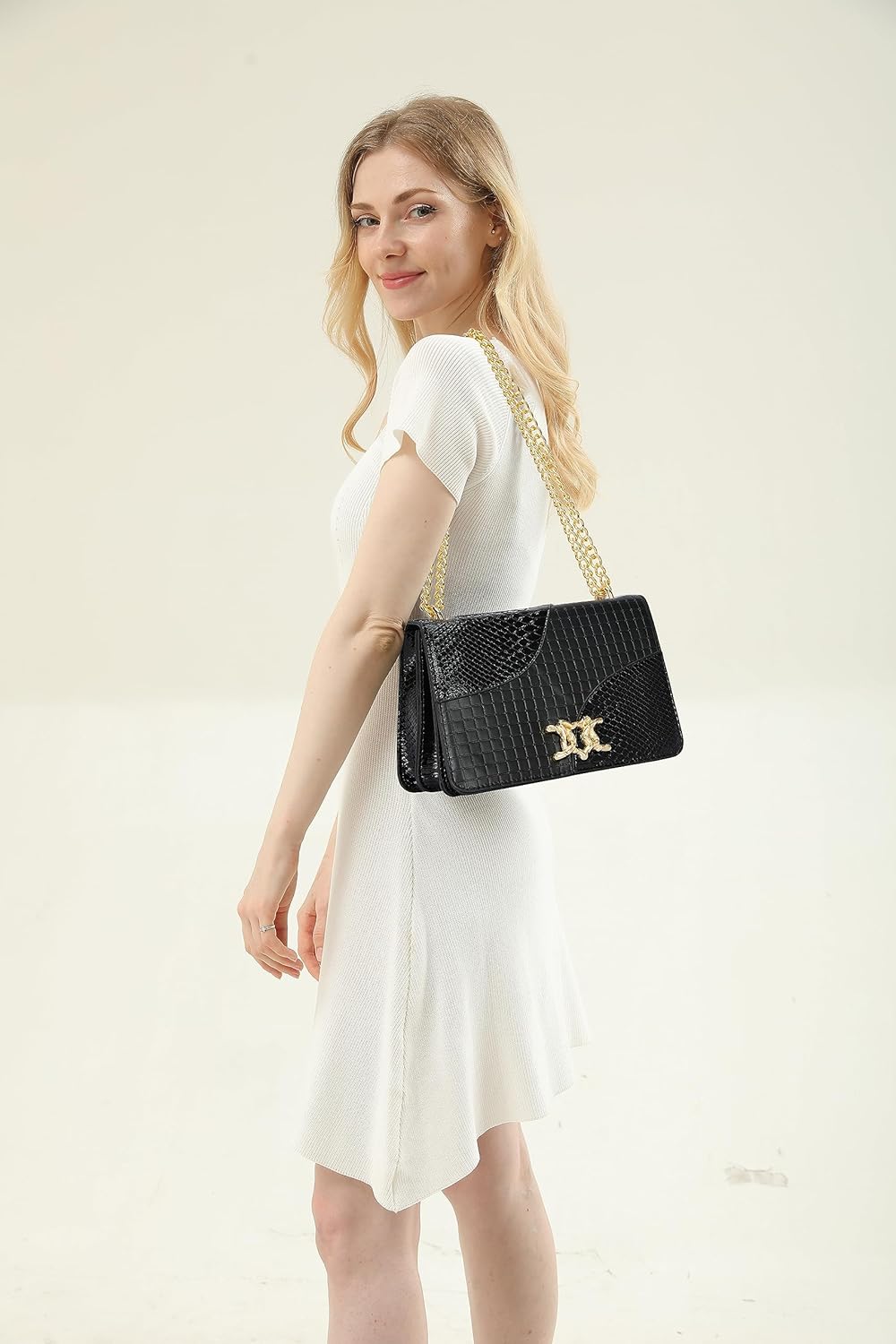 Elegant Black Snake Print PU Leather Crossbody Bag with Gold Chain Strap