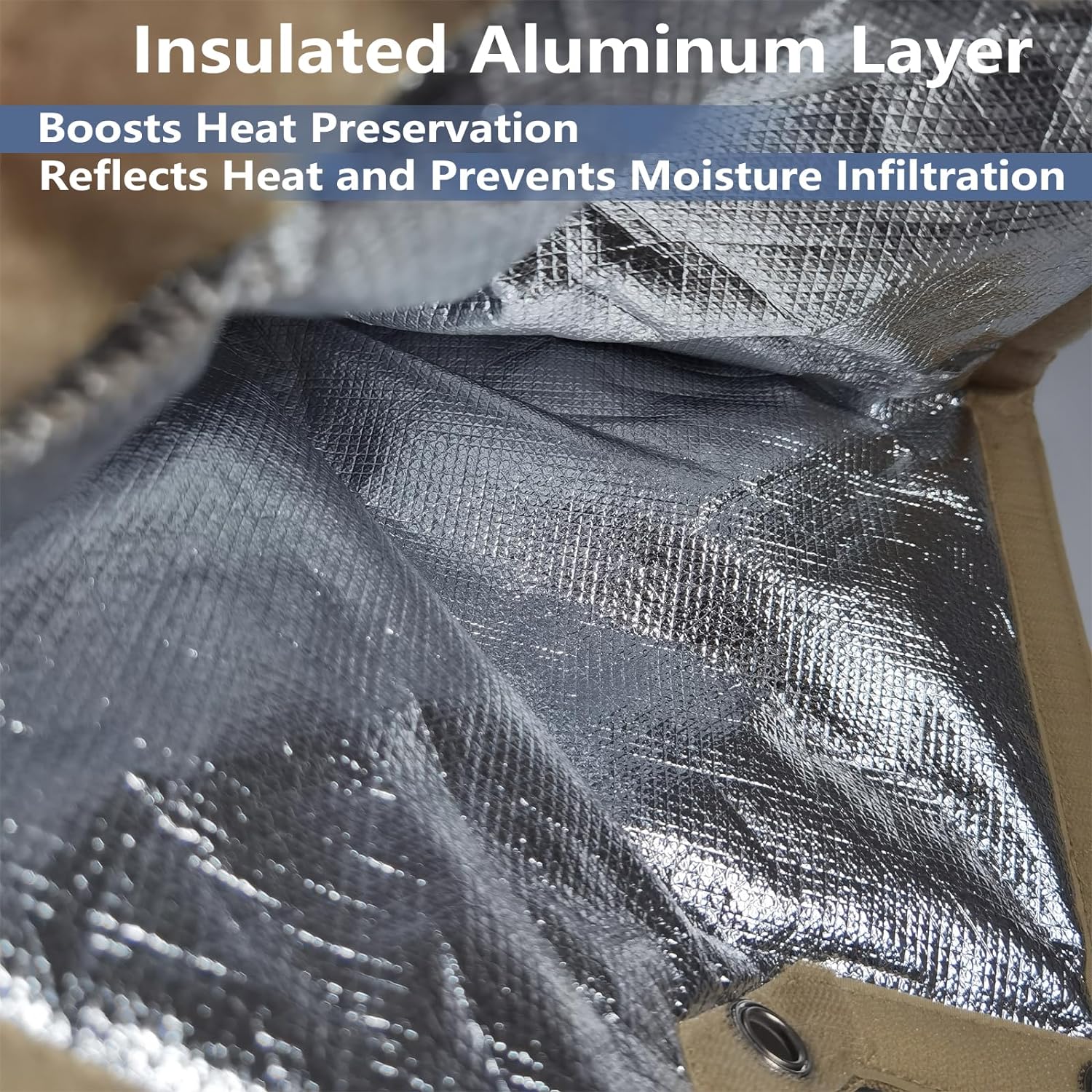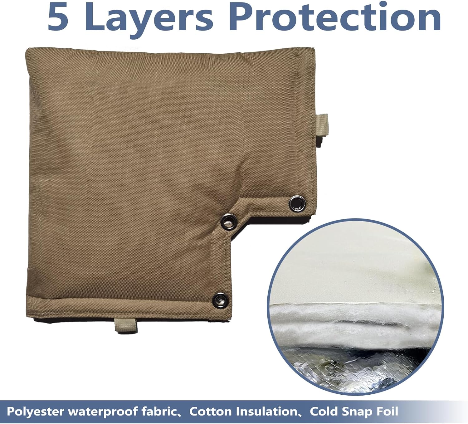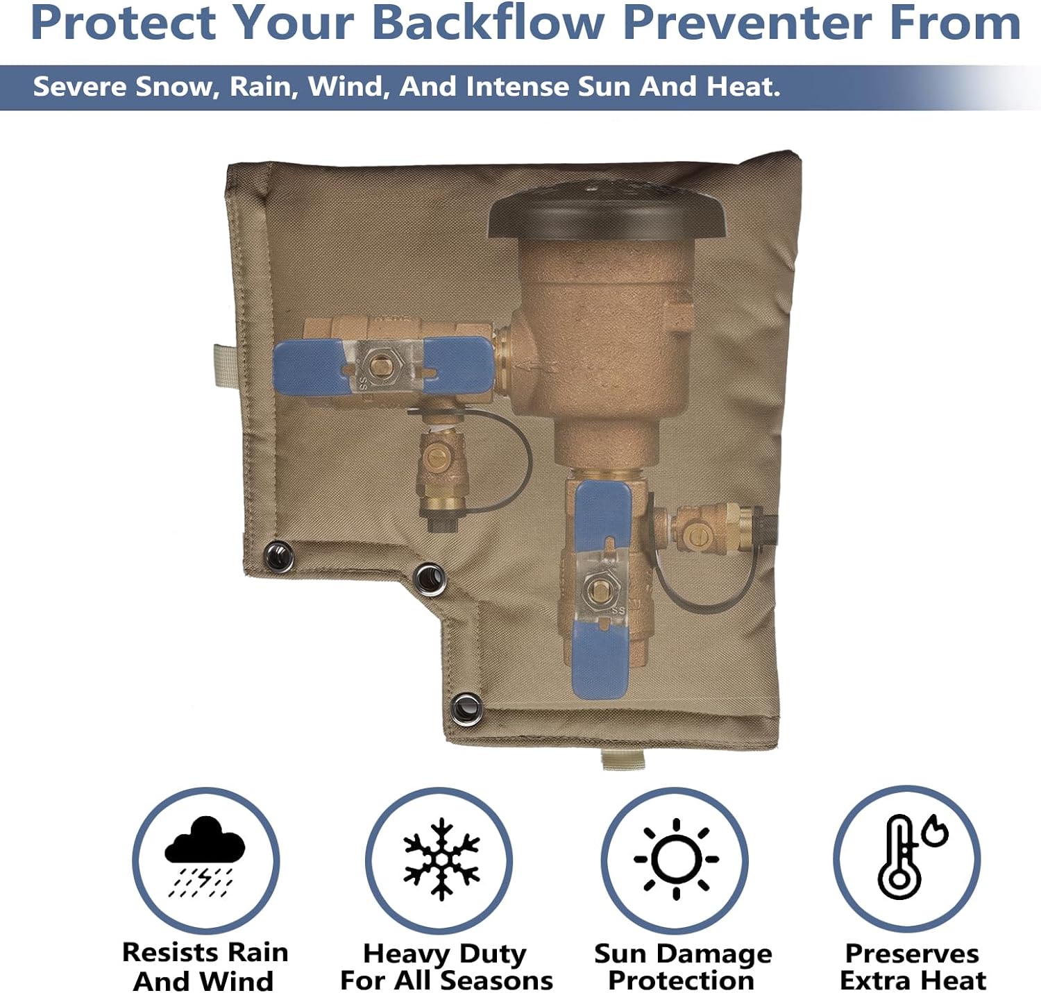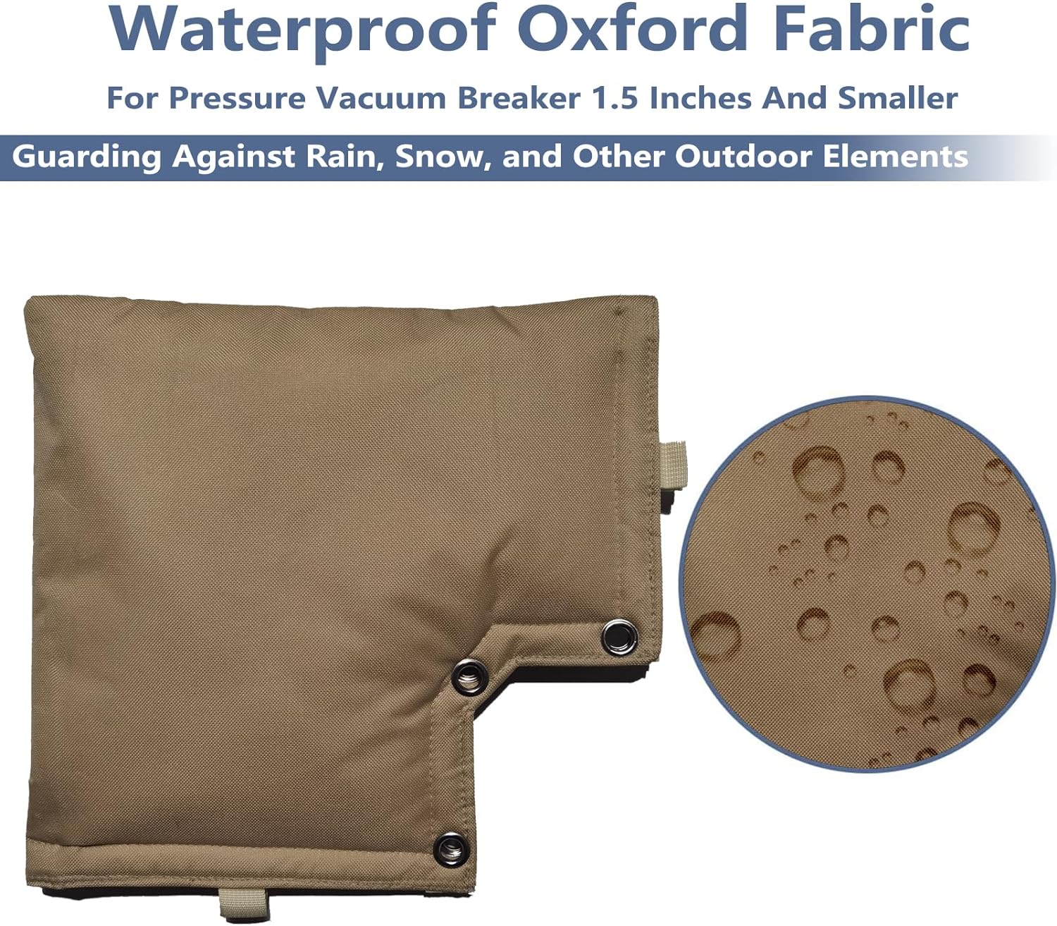Protect your outdoor plumbing from the harsh winter elements with our cutting-edge Insulated Backflow Preventer Cover. Expertly designed to fit a variety of outdoor pipes and valves, including irrigation systems, lawn sprinklers, well heads, and pressure vacuum breakers, this cover measures 13 inches in width and 12 inches in height (approximately 33 cm x 30.5 cm). Our cover boasts a robust 5-layer construction, starting with a heavy-duty 600D Oxford fabric that's completely waterproof, followed by two layers of cotton insulation and two layers of PE silver-coated cloth, ensuring unparalleled insulation and water resistance. The double-stitched seams enhance durability, offering protection not just from freezing temperatures but also from the damaging effects of sunlight.