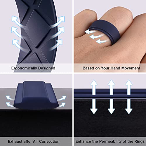 7pk 8mm Wide/2mm Thick Inner Arc Breathable Design Silicone Wedding Rings