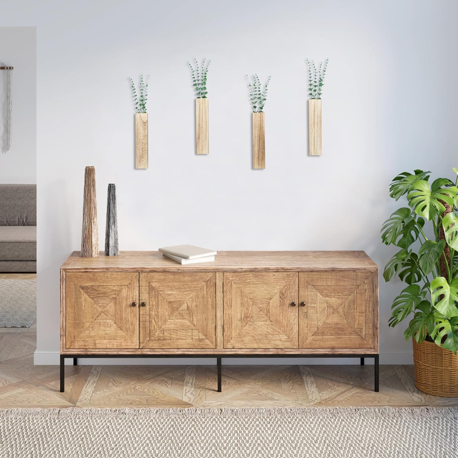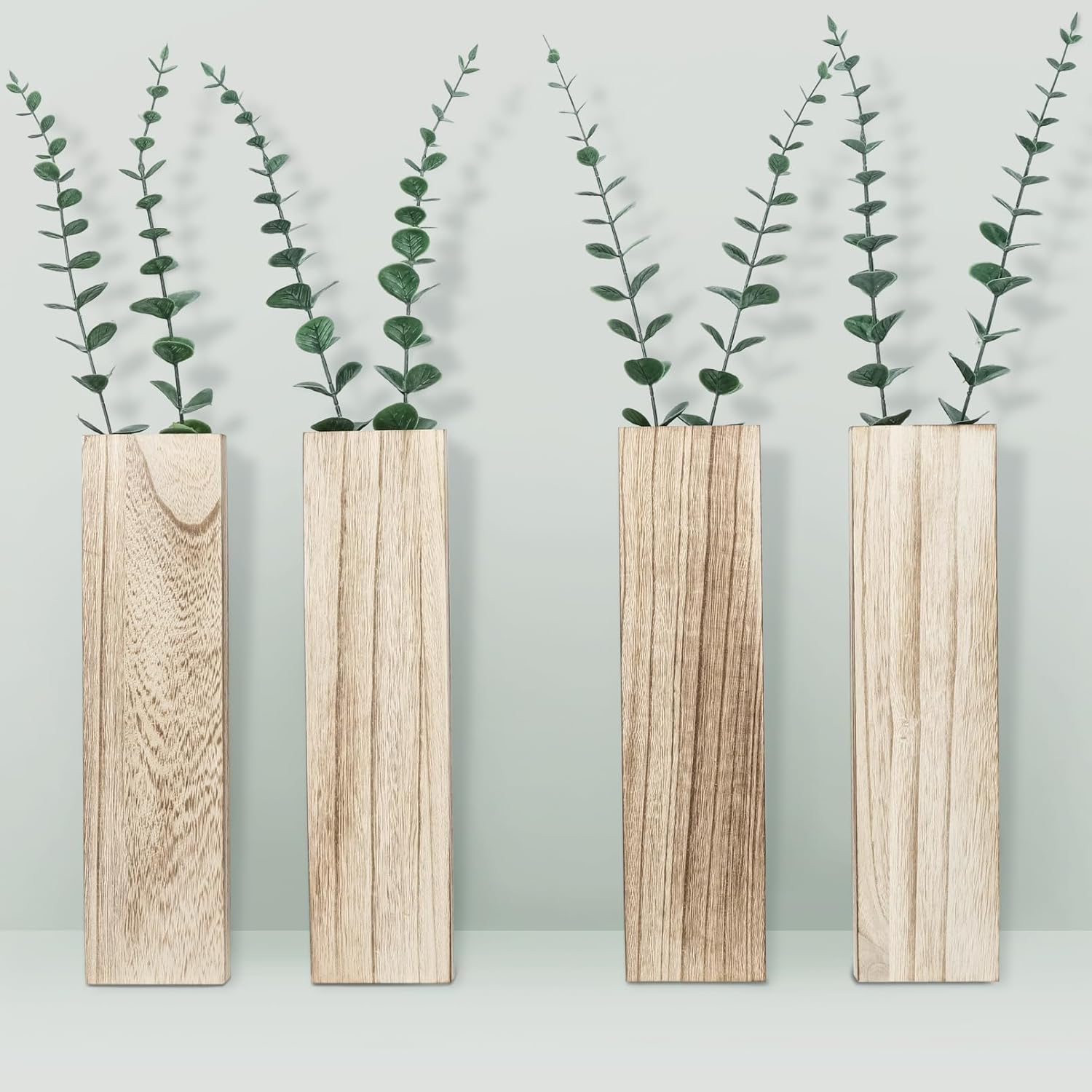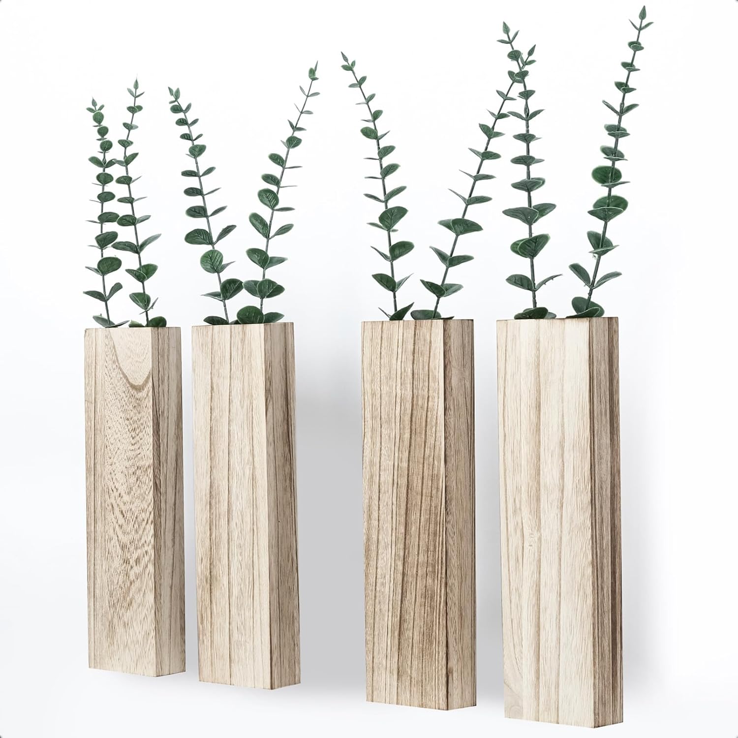 4-Pack Explore Handcrafted Wooden Wall Vases for Modern Farmhouse Decor | Home & Office
