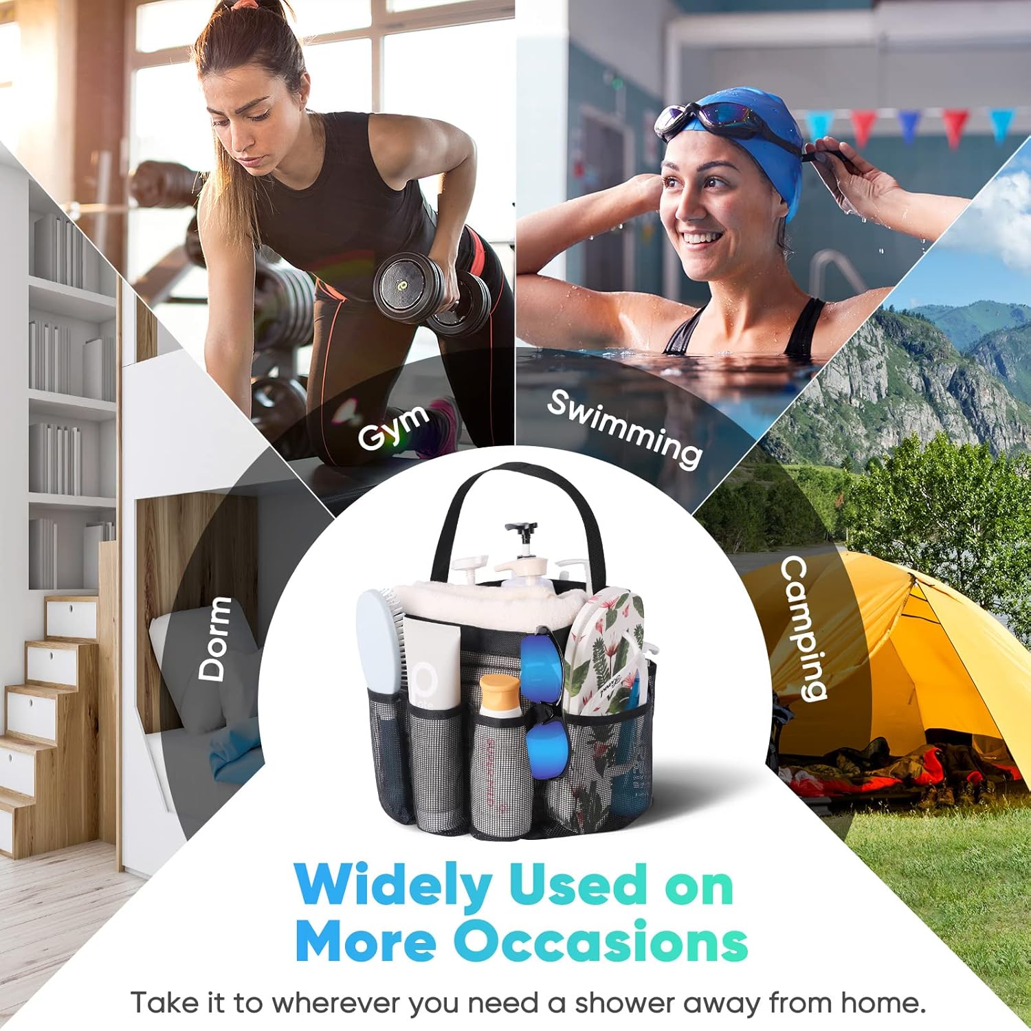 Durable Mesh Shower Caddy with 8 Pockets, Quick Dry - Perfect for College, Beach, Gym, and Travel