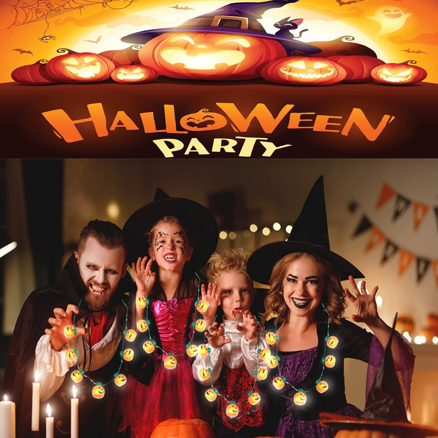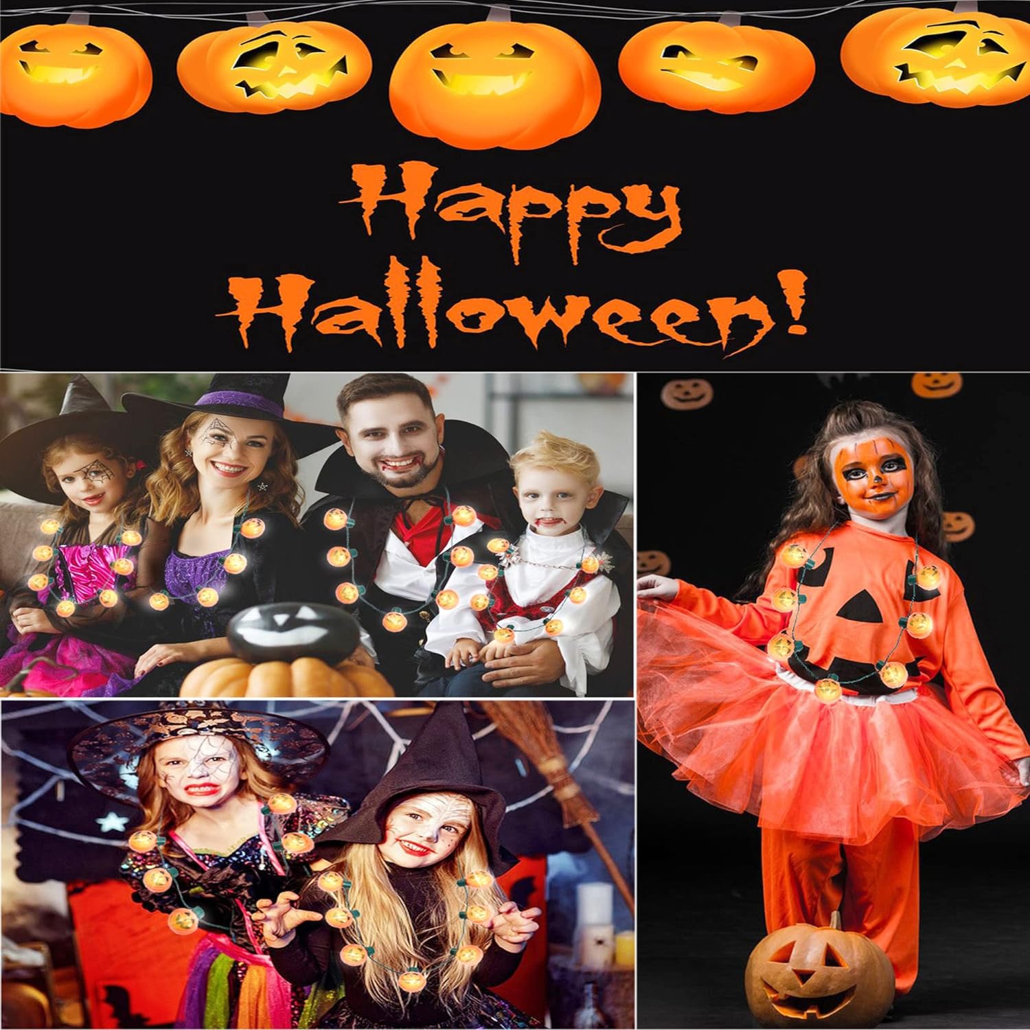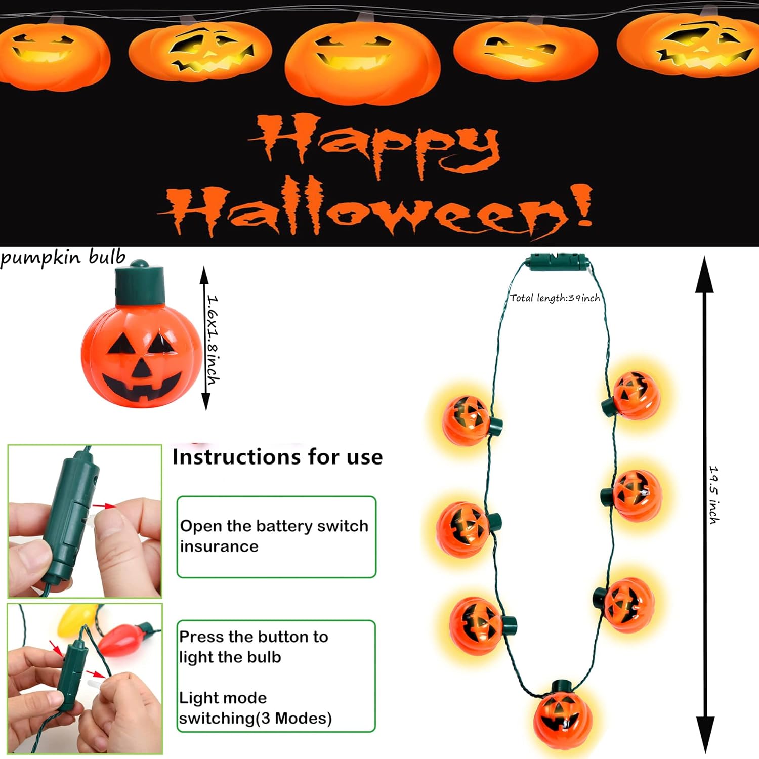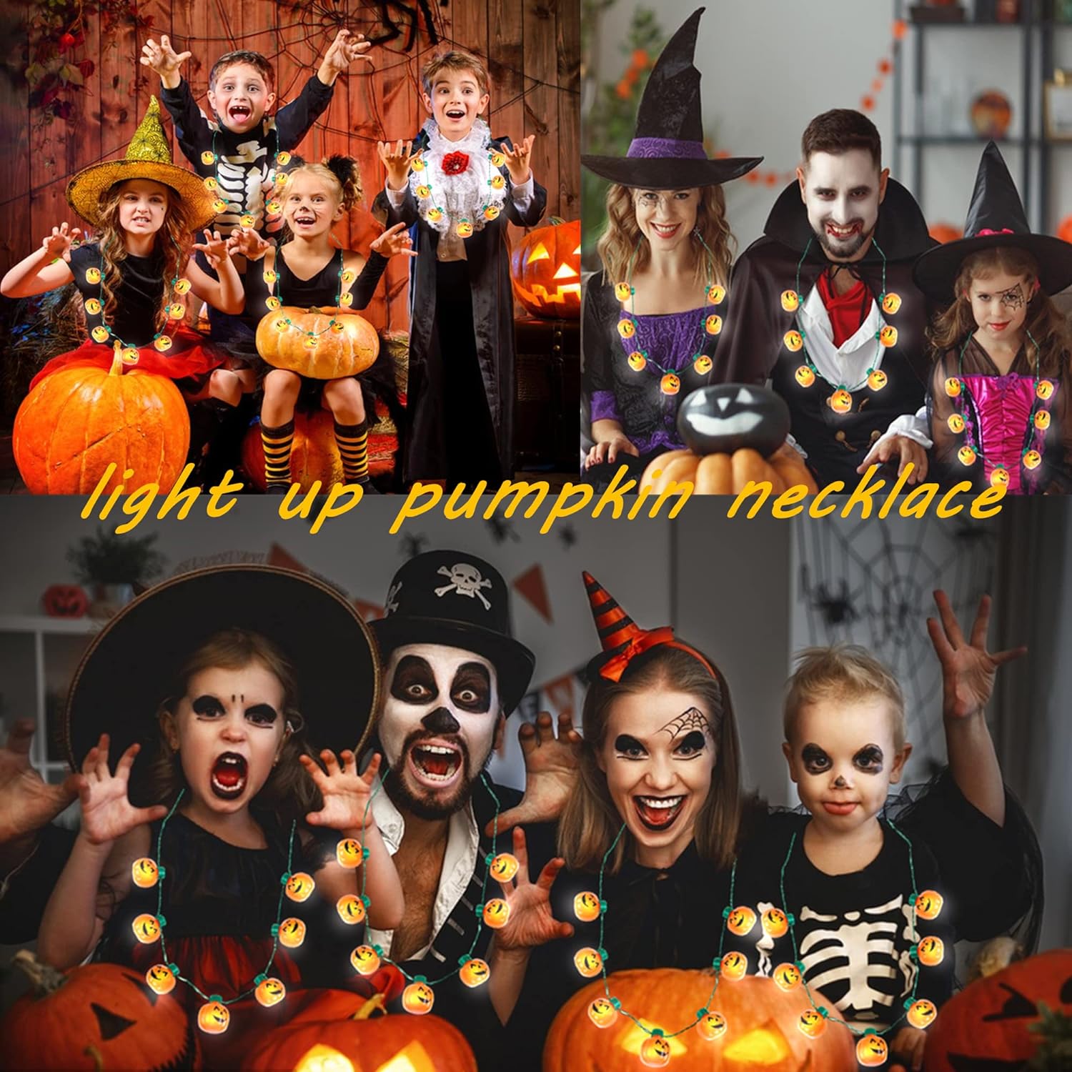 Celebrate the spine-chilling spirit of Halloween with our phenomenal value pack tailored for the ultimate Halloween extravaganza! Dive into the festivity with our set of 4 Halloween light-up necklaces that gleam with the adorable essence of pumpkin design. Each light-up pumpkin necklace spans an impressive 39 inches (99.06 cm) to drape comfortably around your neck, adding a captivating luminous touch to your outfit.