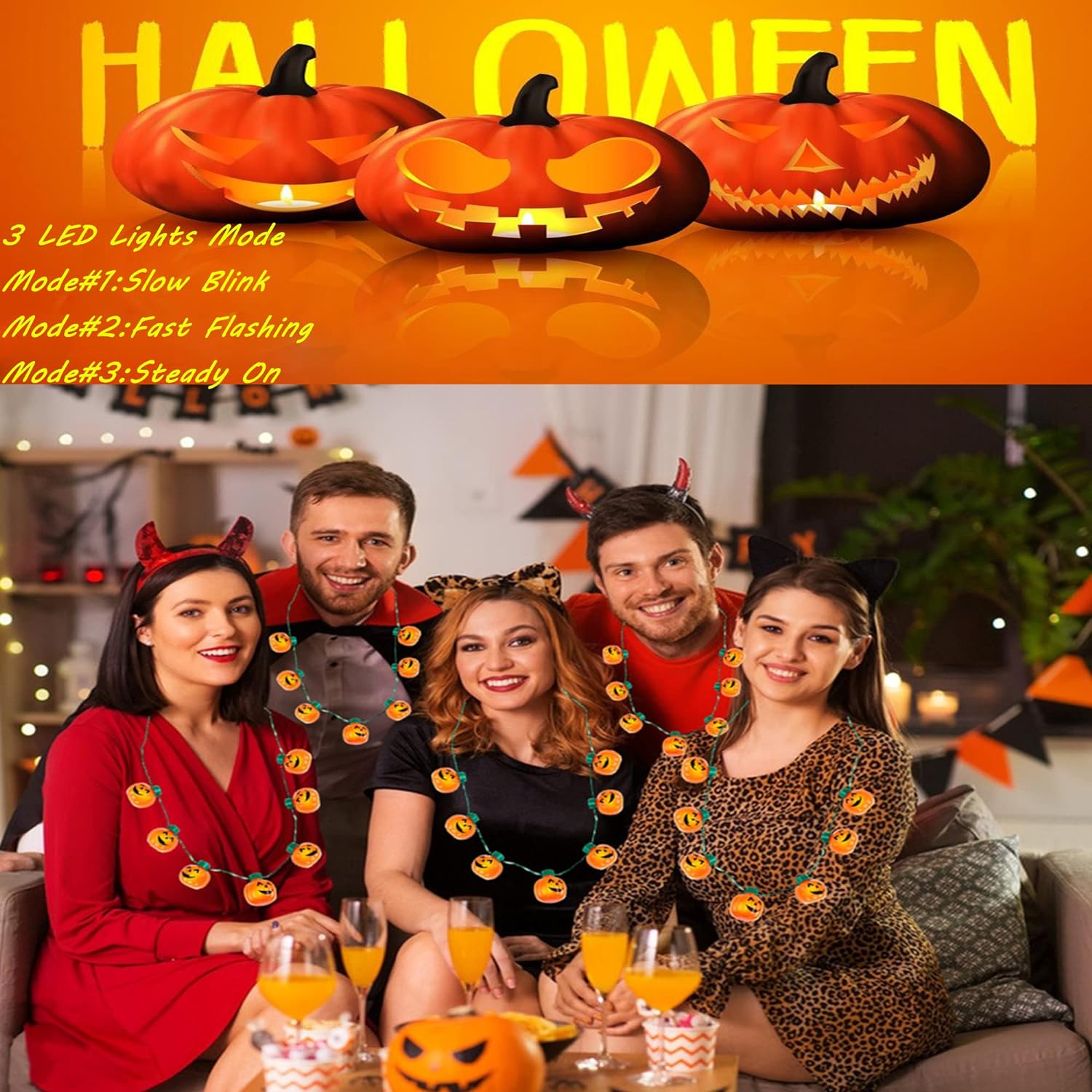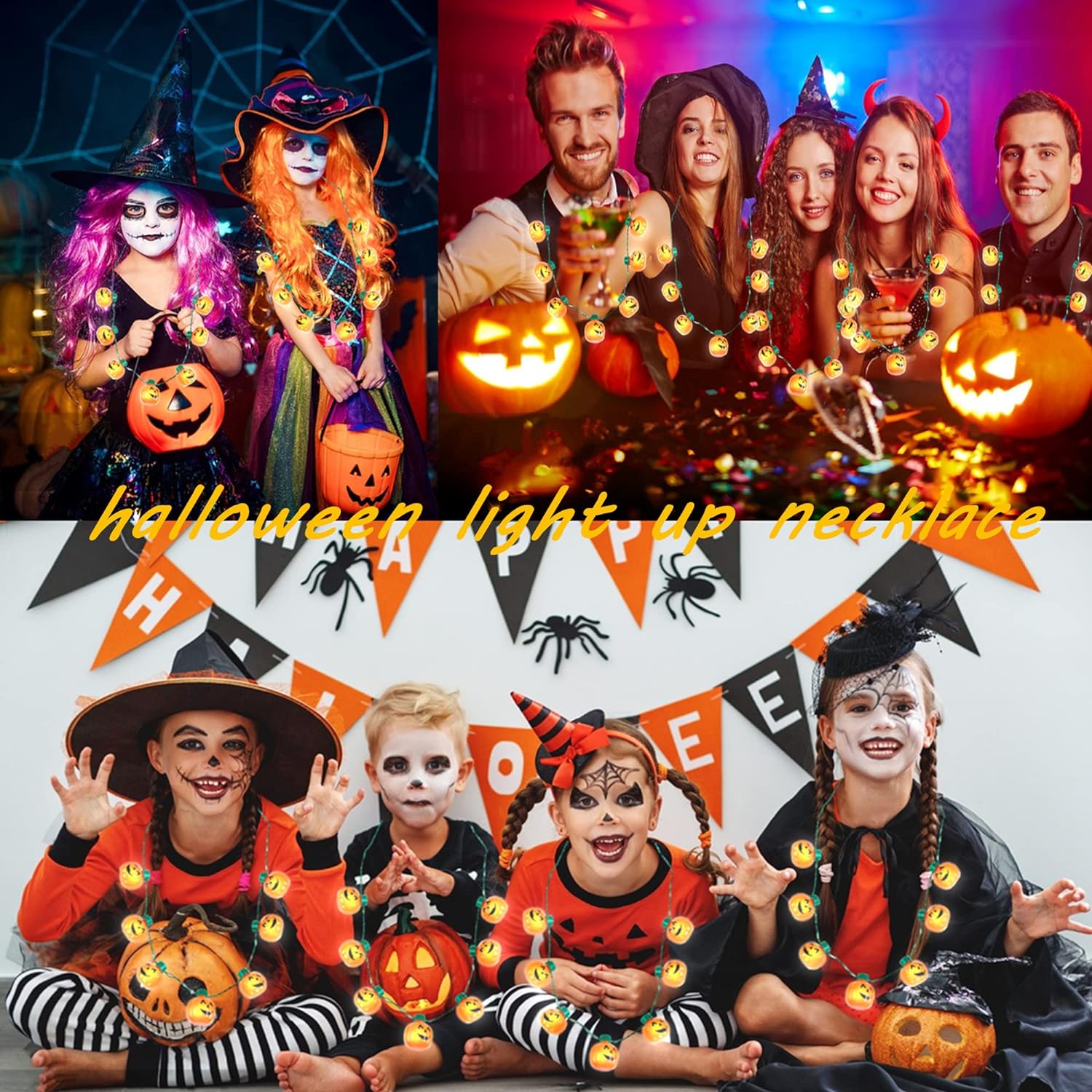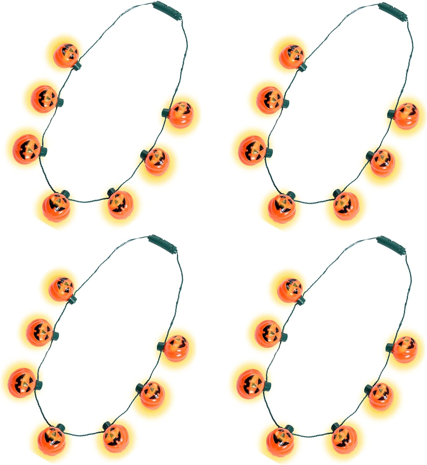 4pk Light Up Halloween Pumpkin Jack-O-Lantern Glow In The Dark Necklaces
