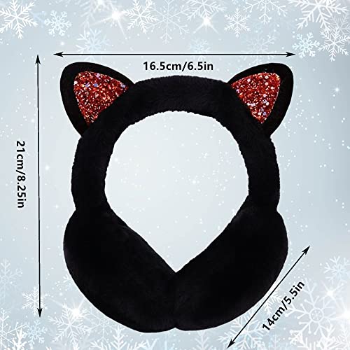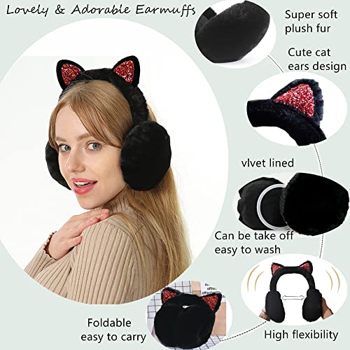 Eyegla Winter Ear Muffs for Women Fleece Ear Warmers Faux Fur Warm Cat Ear Earmuffs Foldable Outdoor Winter Ear Cover for Girls,Black