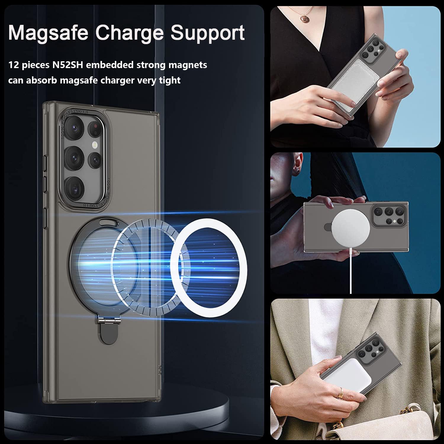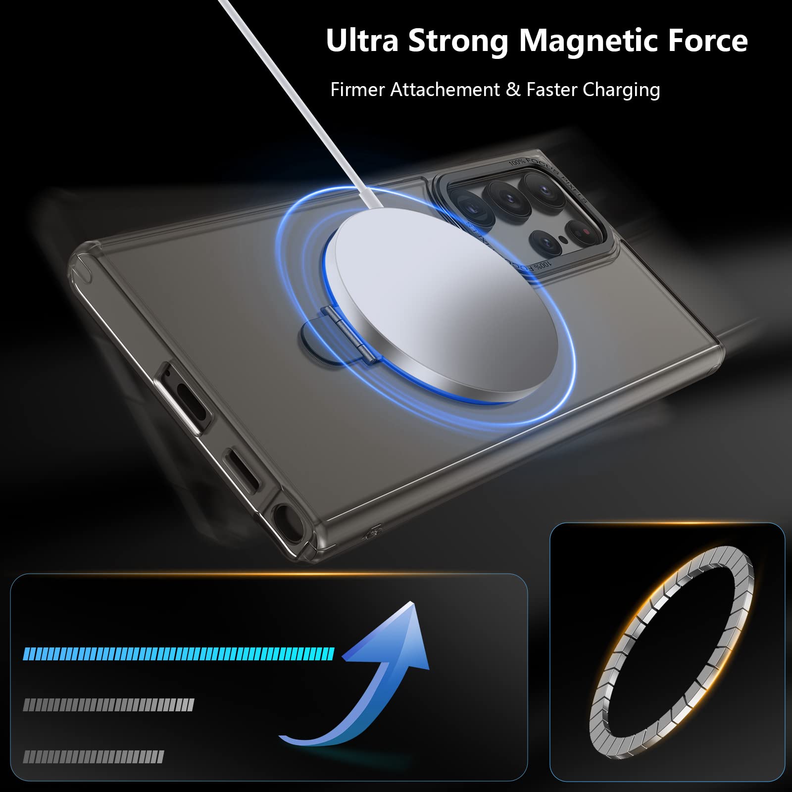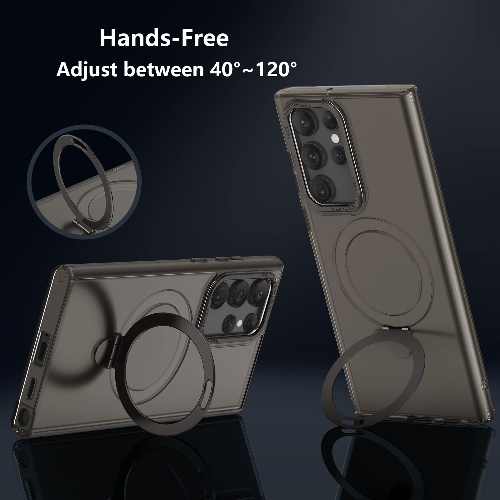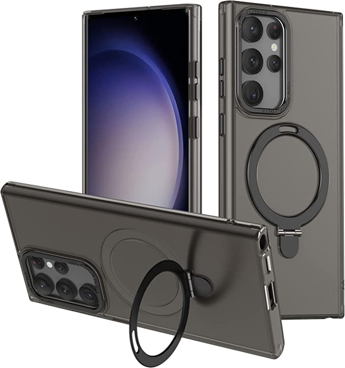 Translucent Black Galaxy S23 Ultra Case w/ Stand Works w/ Magnetic Wireless Chrg