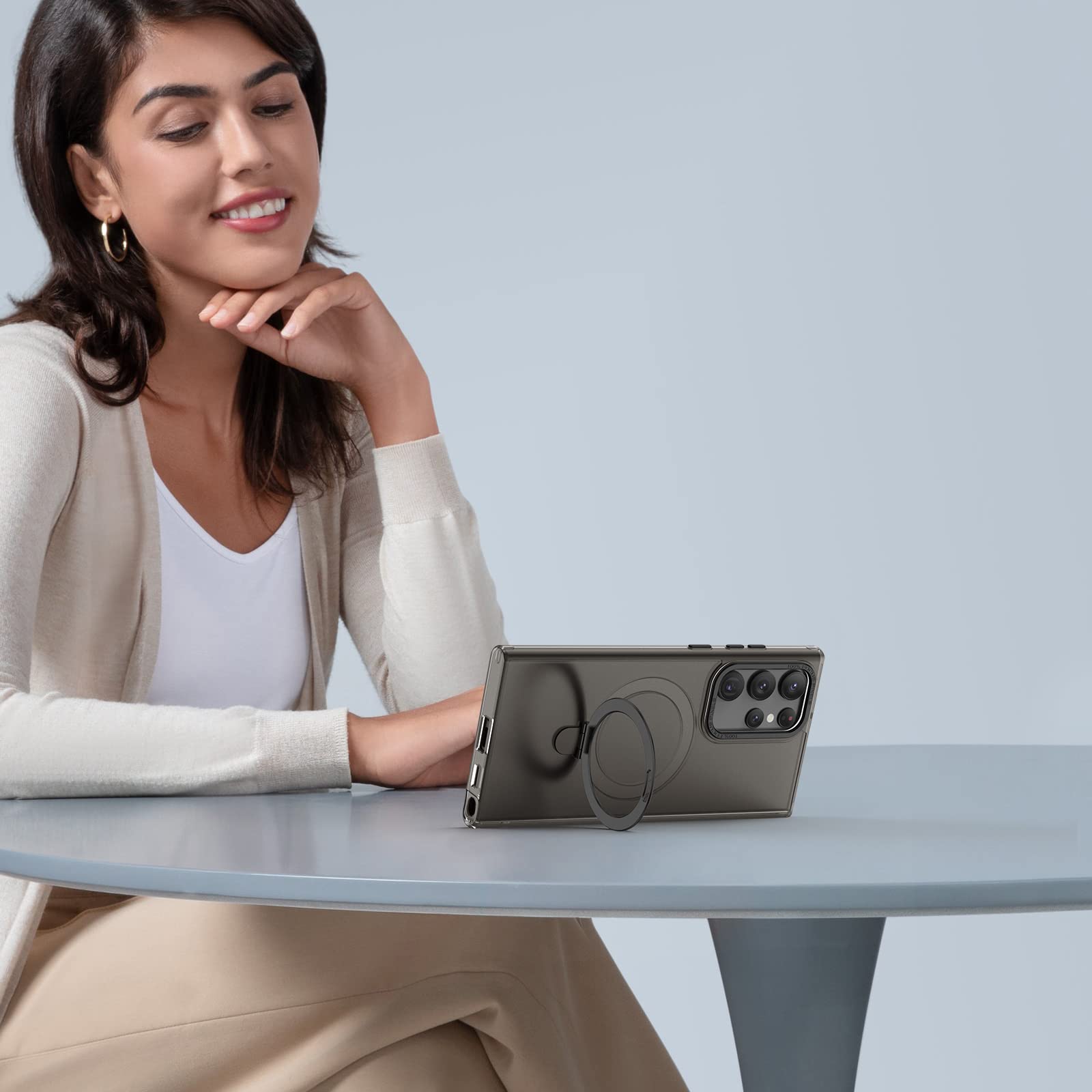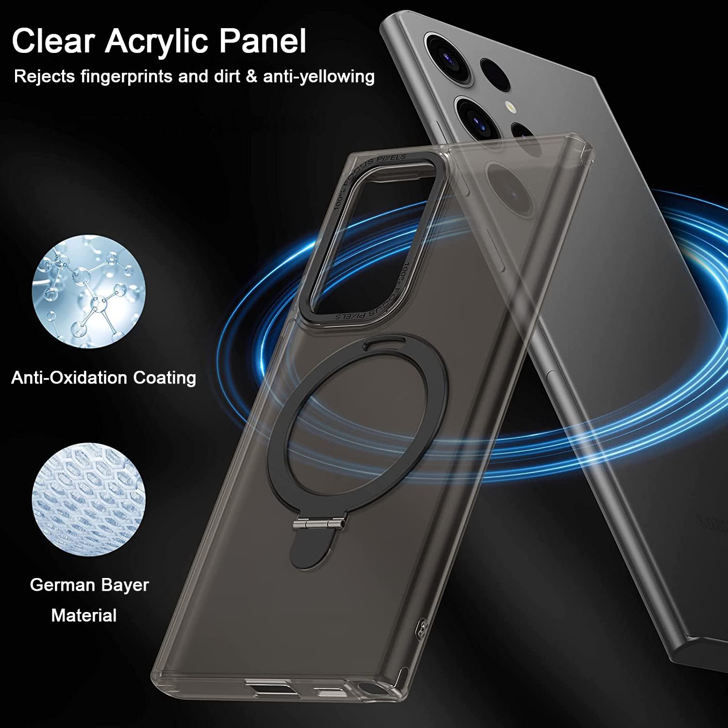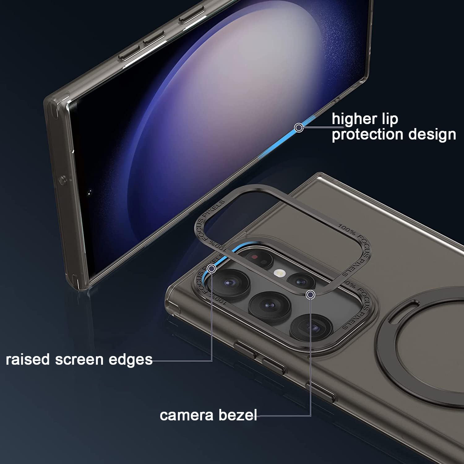 Translucent Black Galaxy S23 Ultra Case w/ Stand Works w/ Magnetic Wireless Chrg