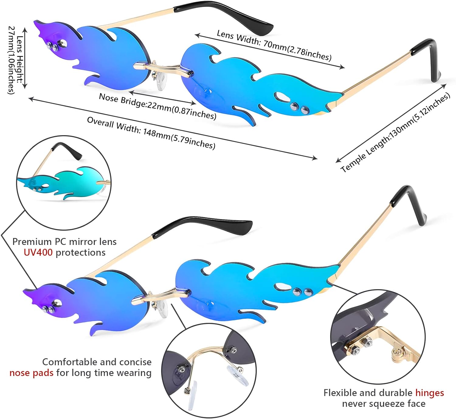 Crafted with an eye for detail, the flame sunglasses showcase a novel design, radiating charm with a medley of colors that effortlessly blend with diverse attire styles. It's more than just looks; every aspect of the sunglasses echoes dedication to quality. The premium PC mirrored lens coupled with an ultra-lightweight metal frame promises a hassle-free, comfortable experience. Add to this high-grade polycarbonate lenses, soft silicone nose pads, and fortified metal screws, the sunglasses aren't just about flair – they're built to last.