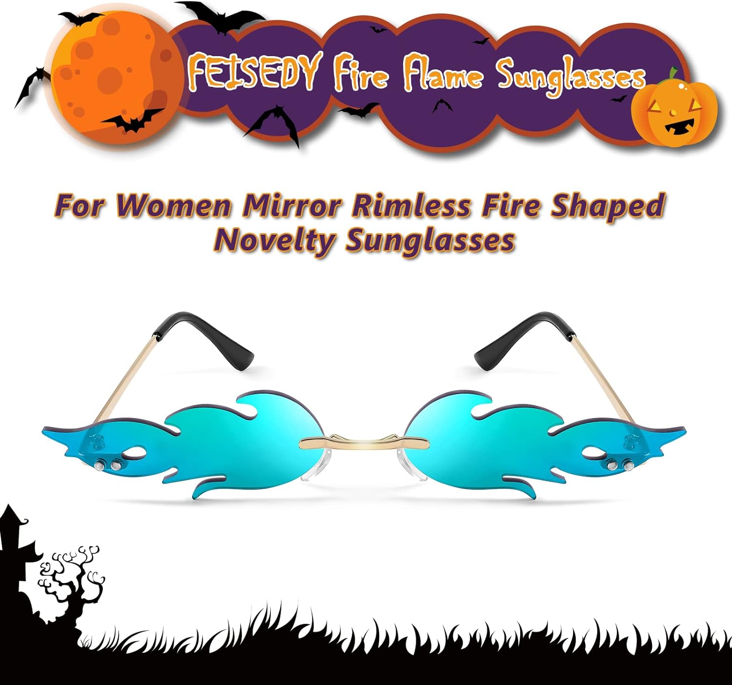 Fire Flame Mirror Rimless Novelty Sunglasses