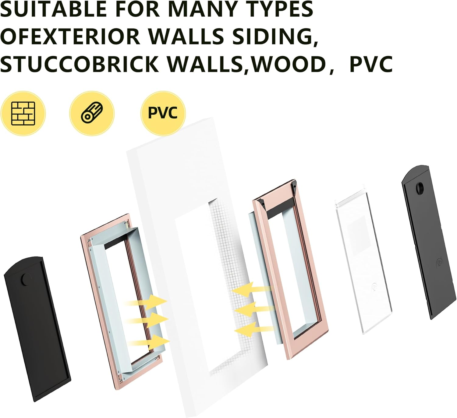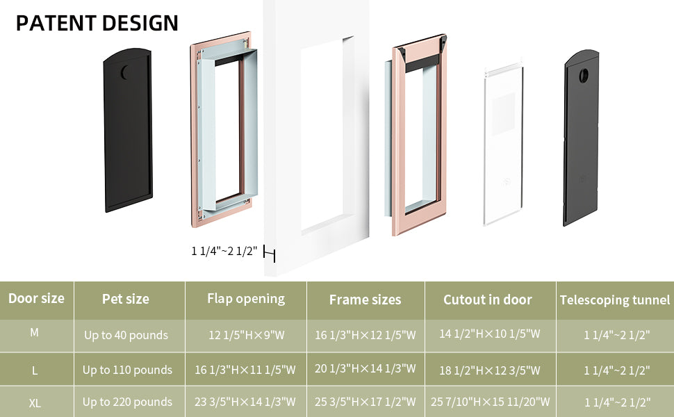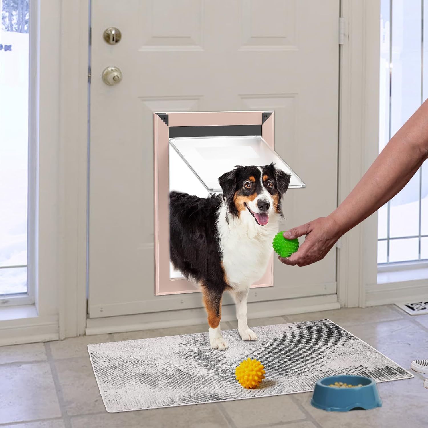 Experience the perfect blend of functionality and style with our Medium Weatherproof Dog Door, crafted from durable aviation aluminum alloy to ensure long-lasting use. This rugged doggy door is specifically designed for pets under 40 lbs and fits seamlessly into doorways ranging from 1 1/4" to 2 1/2" thick. The innovative double sliding lock panel enhances security while the magnetic flap closure ensures energy efficiency by effectively blocking drafts. The cutting-edge double-sided wind deflector features a 3-level adjustable design, offering superior protection against harsh weather conditions. Each door comes complete with a cutting template, detailed instructions, and all necessary installation hardware for a straightforward setup. The rose gold finish adds a touch of elegance, making it a stylish addition to your home.