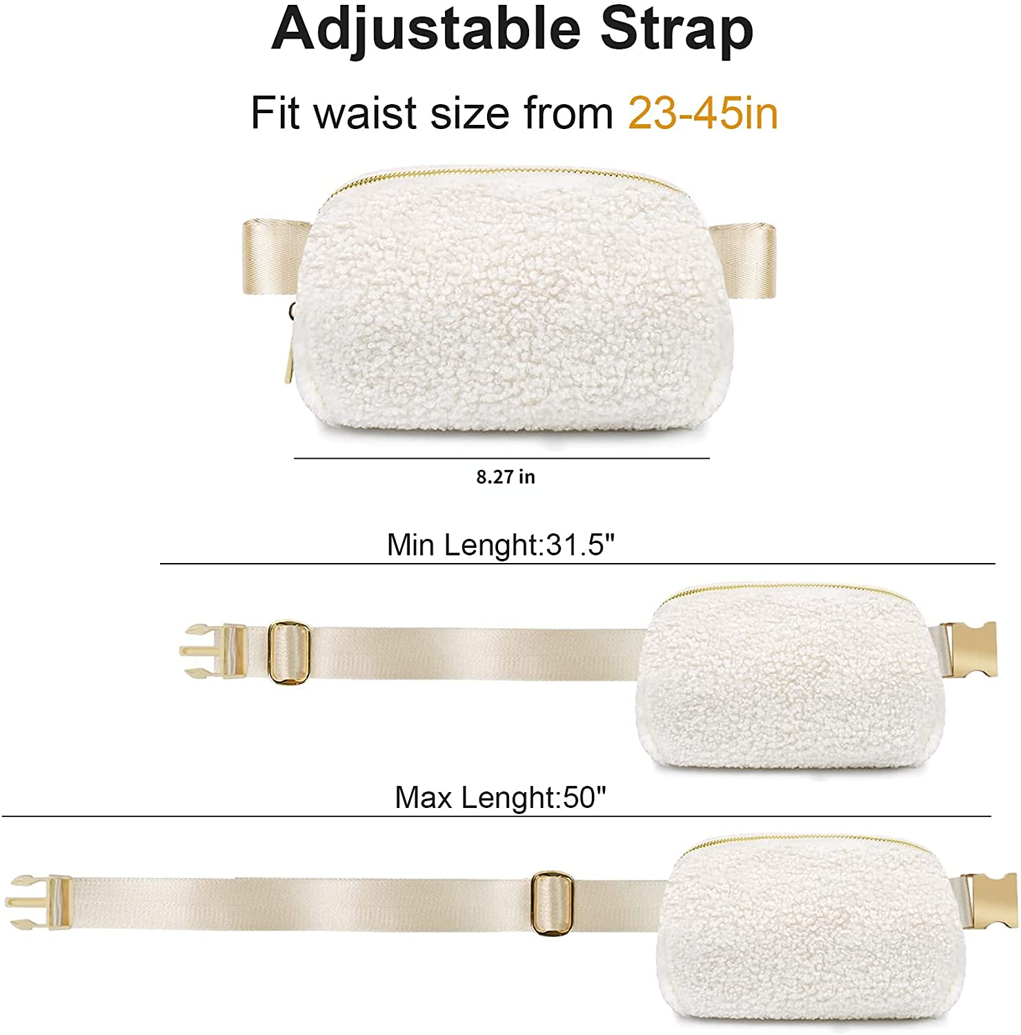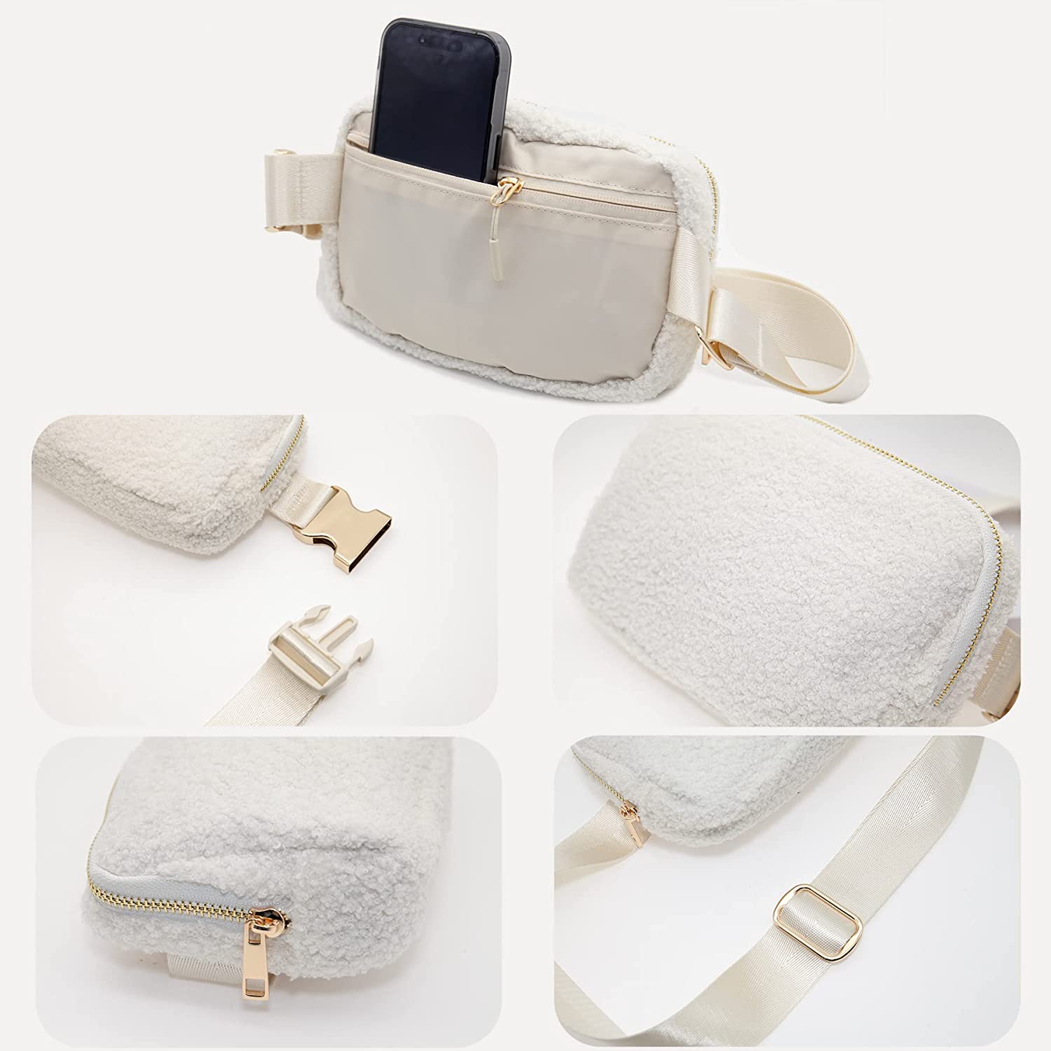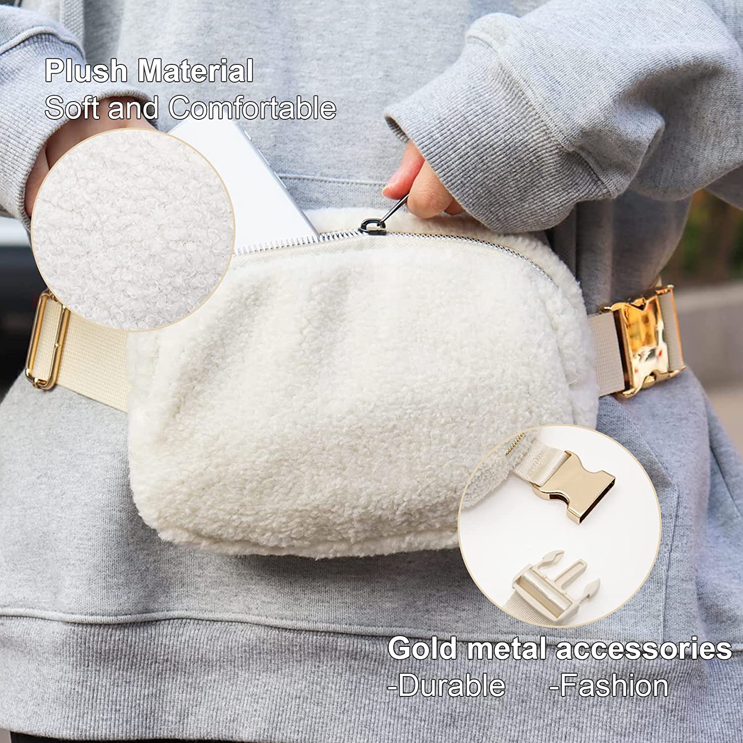 Fleece Belt Bag/Fanny Pack/Crossbody Bag w/ Hardware Buckle & Adjustable Strap