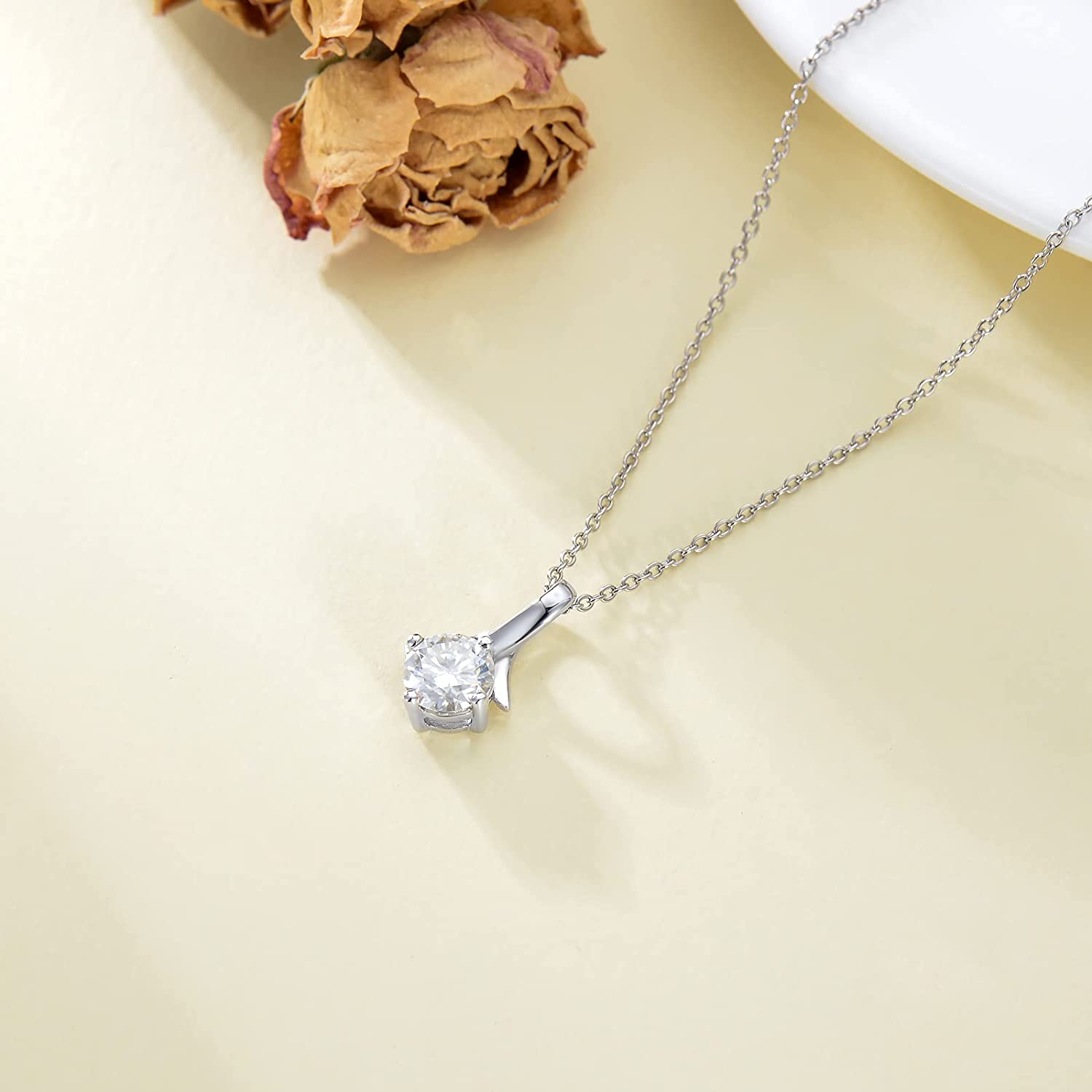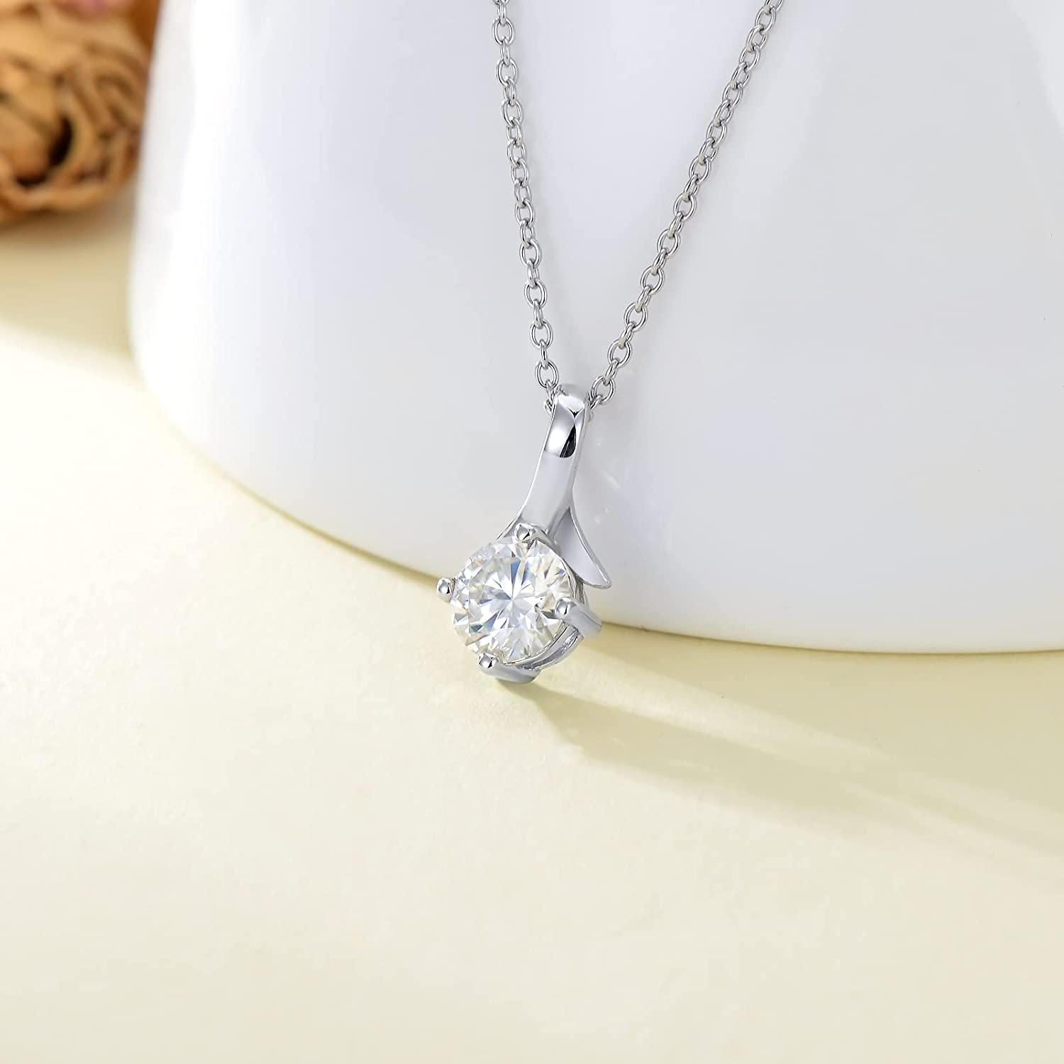 925 Sterling Silver 1 CT 6.5mm Round Brilliant Cut Solitaire Moissanite Necklace
