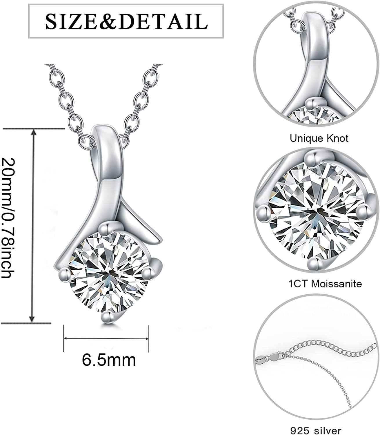 MOISSANITE NECKLACE: The simple pendant design uses a special knot to connect with a 1-carat Moissanite, which is more brilliant than any other stone. It is unique, fashionable, and elegant.
