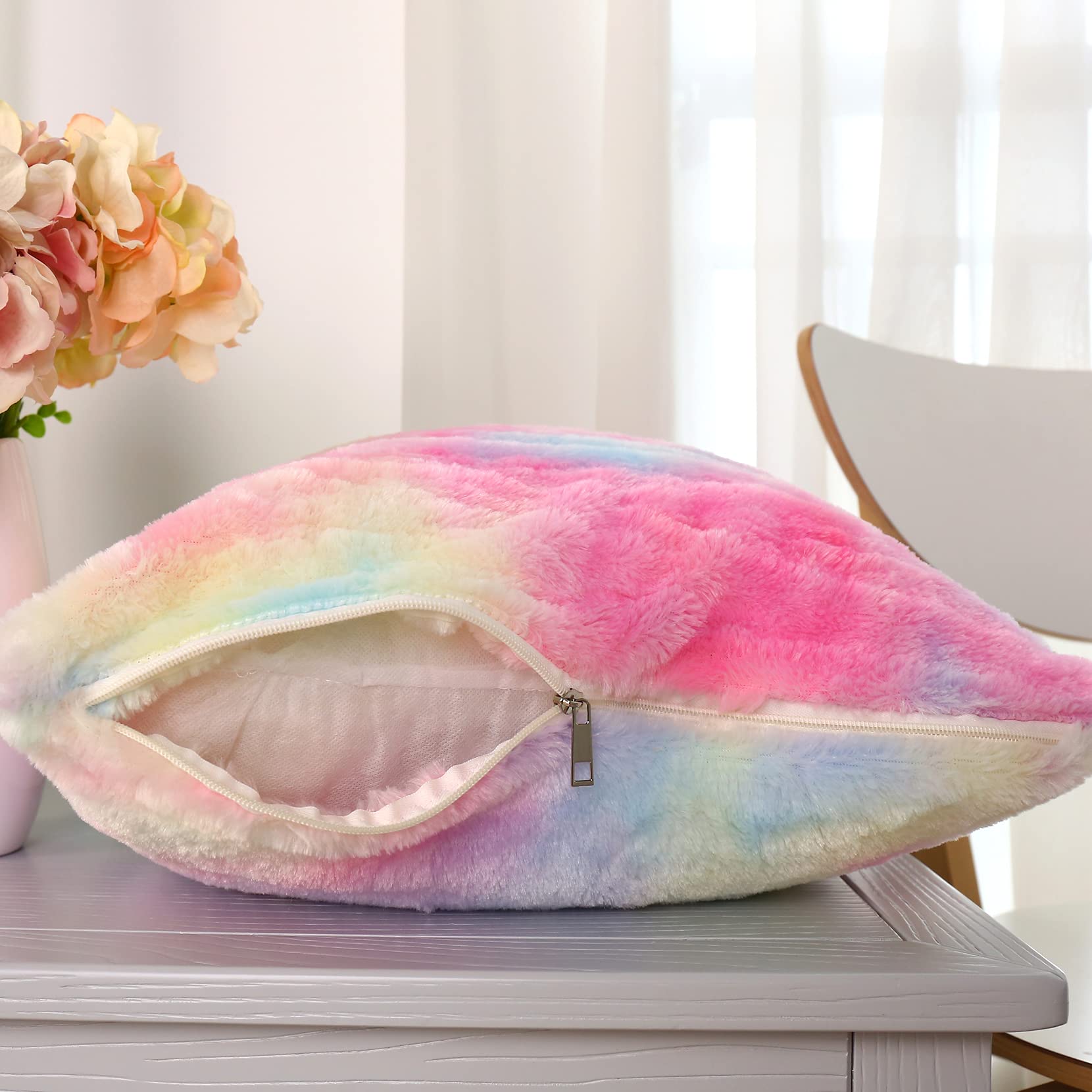 2pk 18"x18" Super Soft Fluffly Faux Fur Wool Tie Dye Throw Pillow Covers