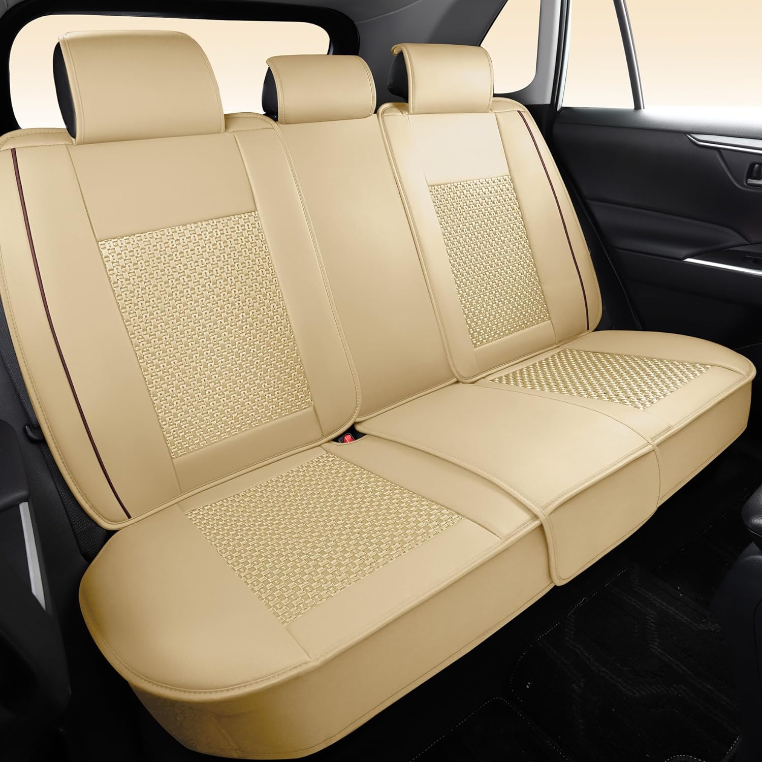 Enhance the comfort and style of your vehicle with our Beige Car Seat Covers Full Set. Designed for versatility, these seat covers are universally compatible with most 5-passenger vehicles, including Sedans, SUVs, Coupes, Hatchbacks, Pickup Trucks, and Vans, particularly suitable for models like Toyota RAV4, Camry, Corolla, Honda CRV, Civic, HRV, Nissan Altima, Rouge, Sentra, and more. Crafted from high-quality faux leather and complemented by high-density comfort foam quilting, our covers ensure durability and breathability, perfect for use throughout the year.