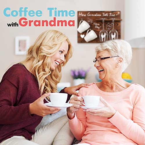 - Great Gifts Choice for Grandma - Mugs and glasses are not included so that grandma can use her favorite mugs and glasses. Wine and coffee lovers can now display their favorite glassware in a fun way on this "How Grandma Tells Time" mugs and glasses holder.