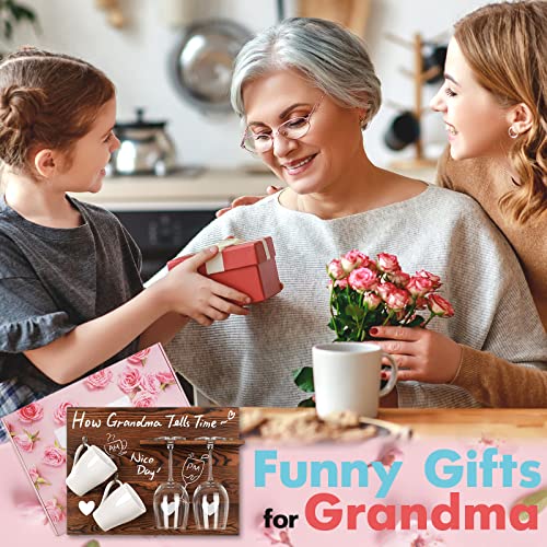 Funistree Gifts for Grandma Christmas Xmas Birthday from Grandkids, Funny Gag Stocking Stuffers Ideas for Nana Granny from Granddaughter Grandson, Mug Rack Wine Glass Holder, How Grandma Tells Time