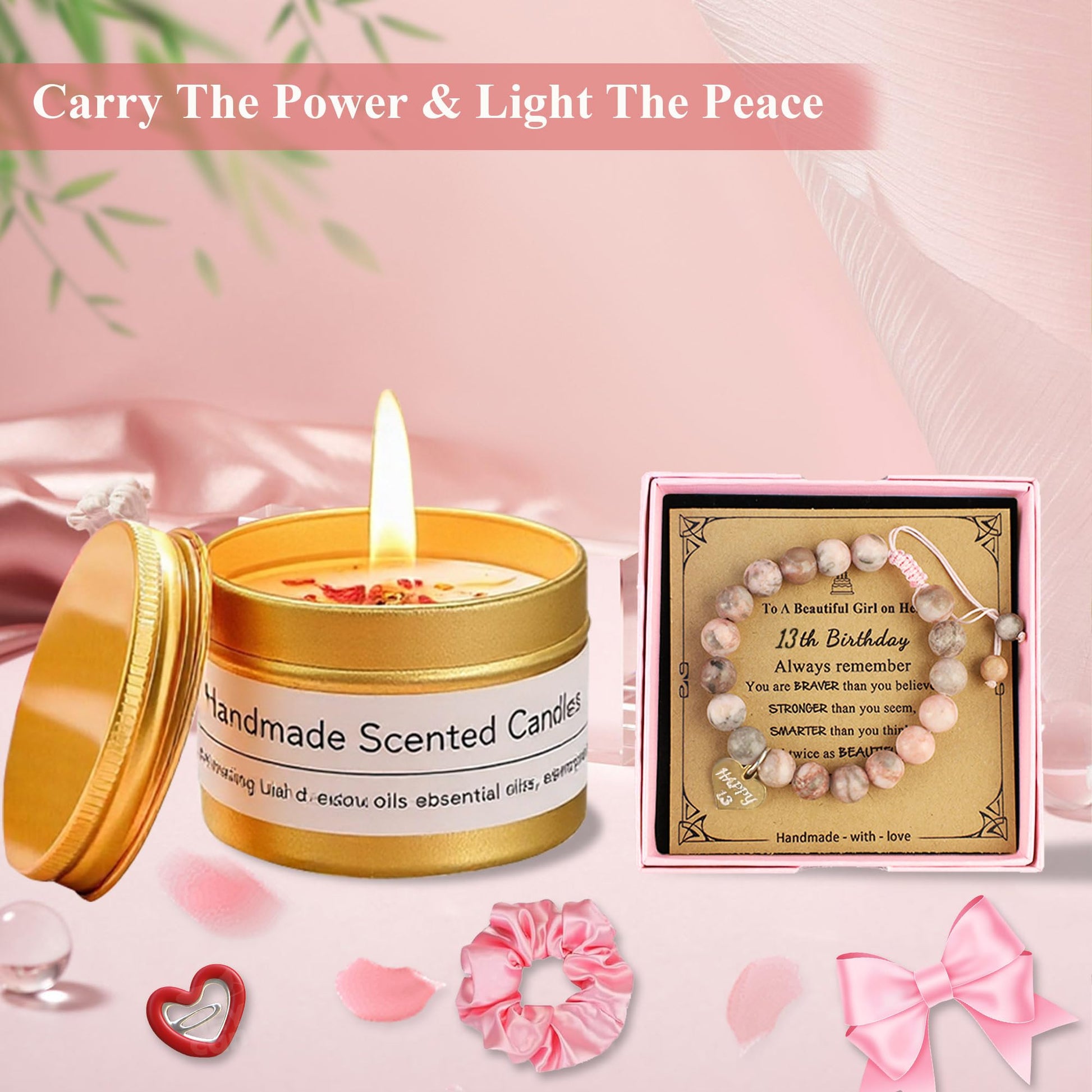 Inside, you’ll find a mix of practical and feel-good birthday favorites, including a 16 oz glass tumbler, a scented candle, a cosmetic bag, a hair tie, a bracelet, soft fuzzy socks, a bath bomb, a pearl necklace, a hair clip, and a birthday card—all packaged in a Happy Birthday gift box. Each item is selected to match the “13 & fabulous” theme, blending cute everyday essentials with accessories she can wear and enjoy.