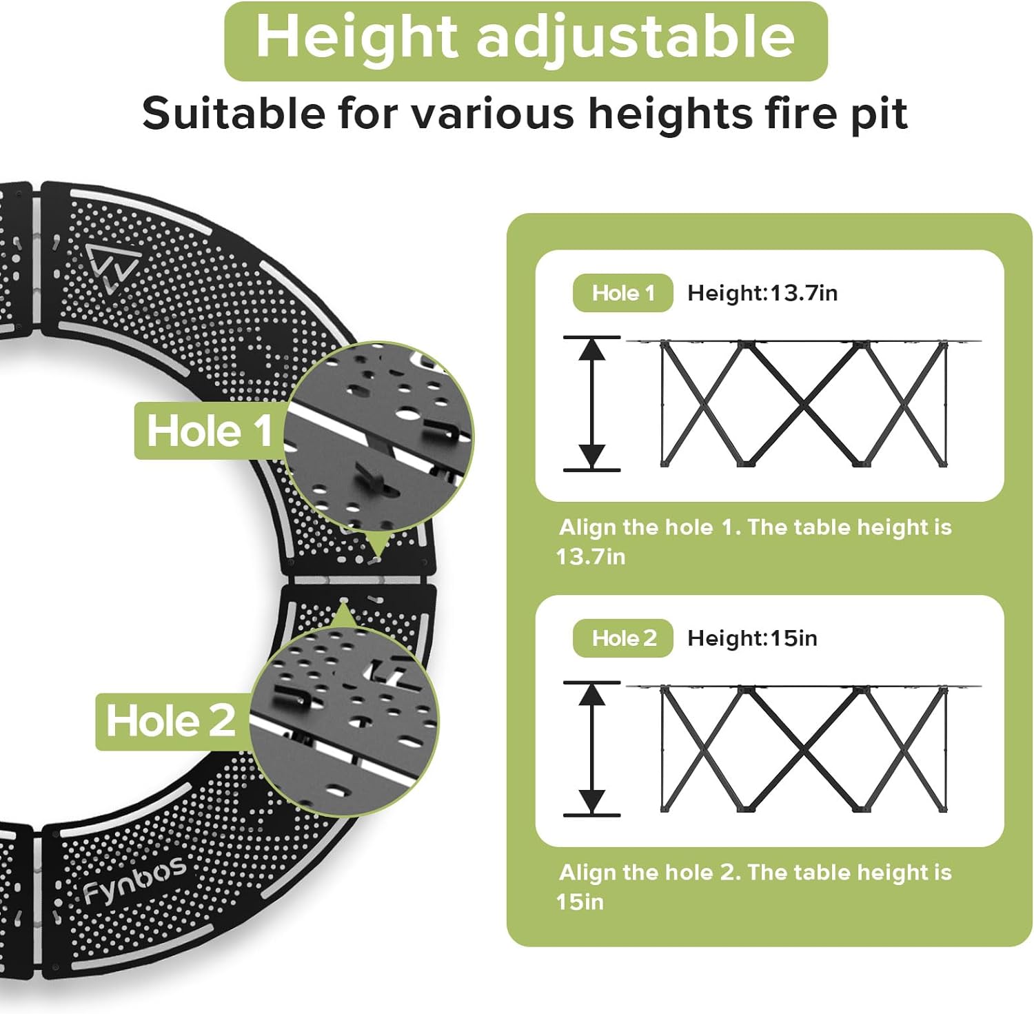 Adjustable Height Fire Pit Surround Tabletop for Outdoor Camping