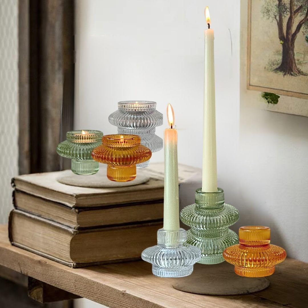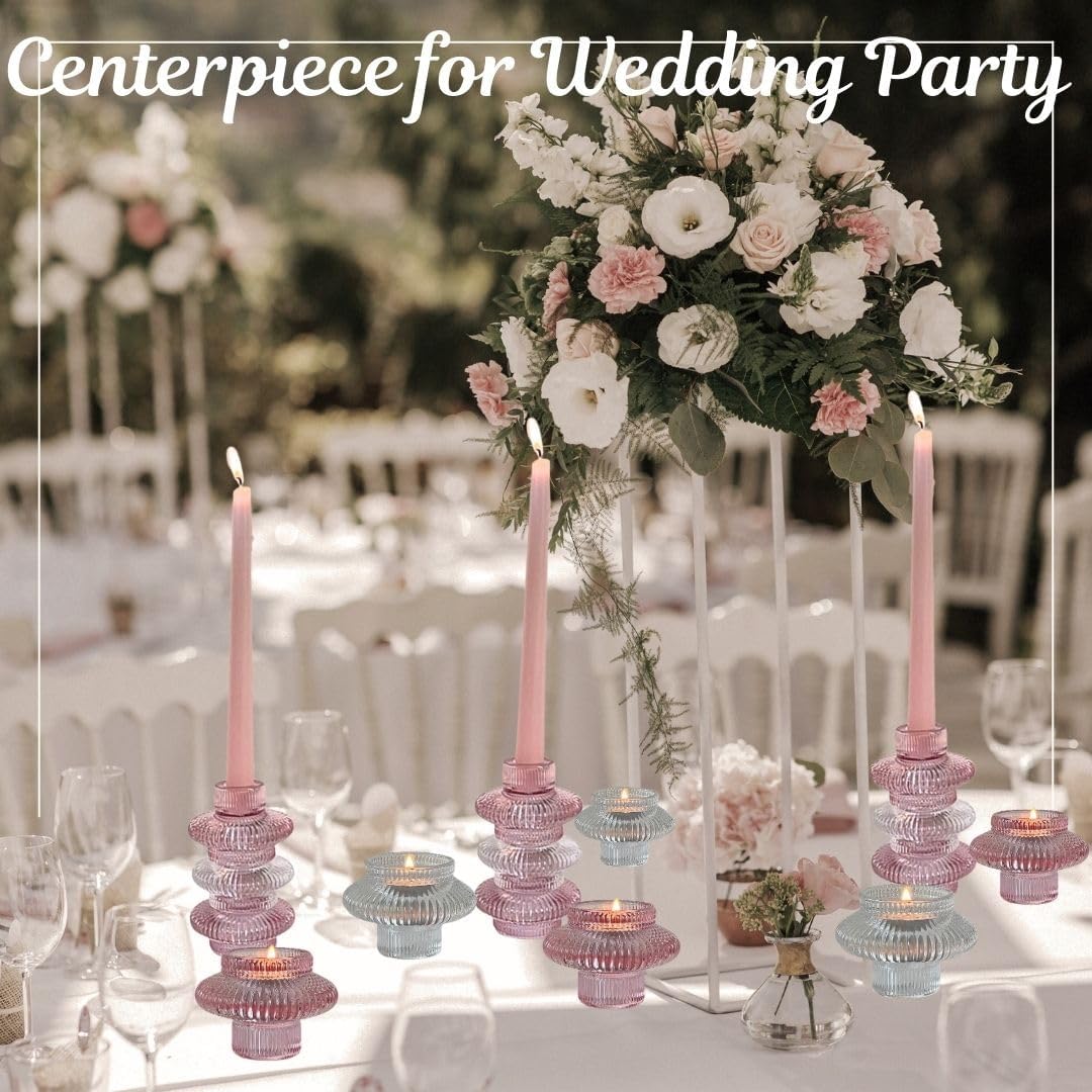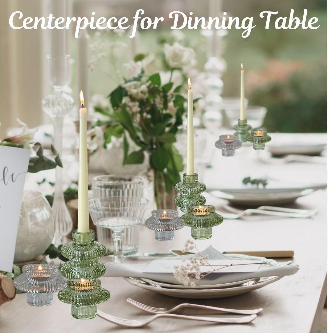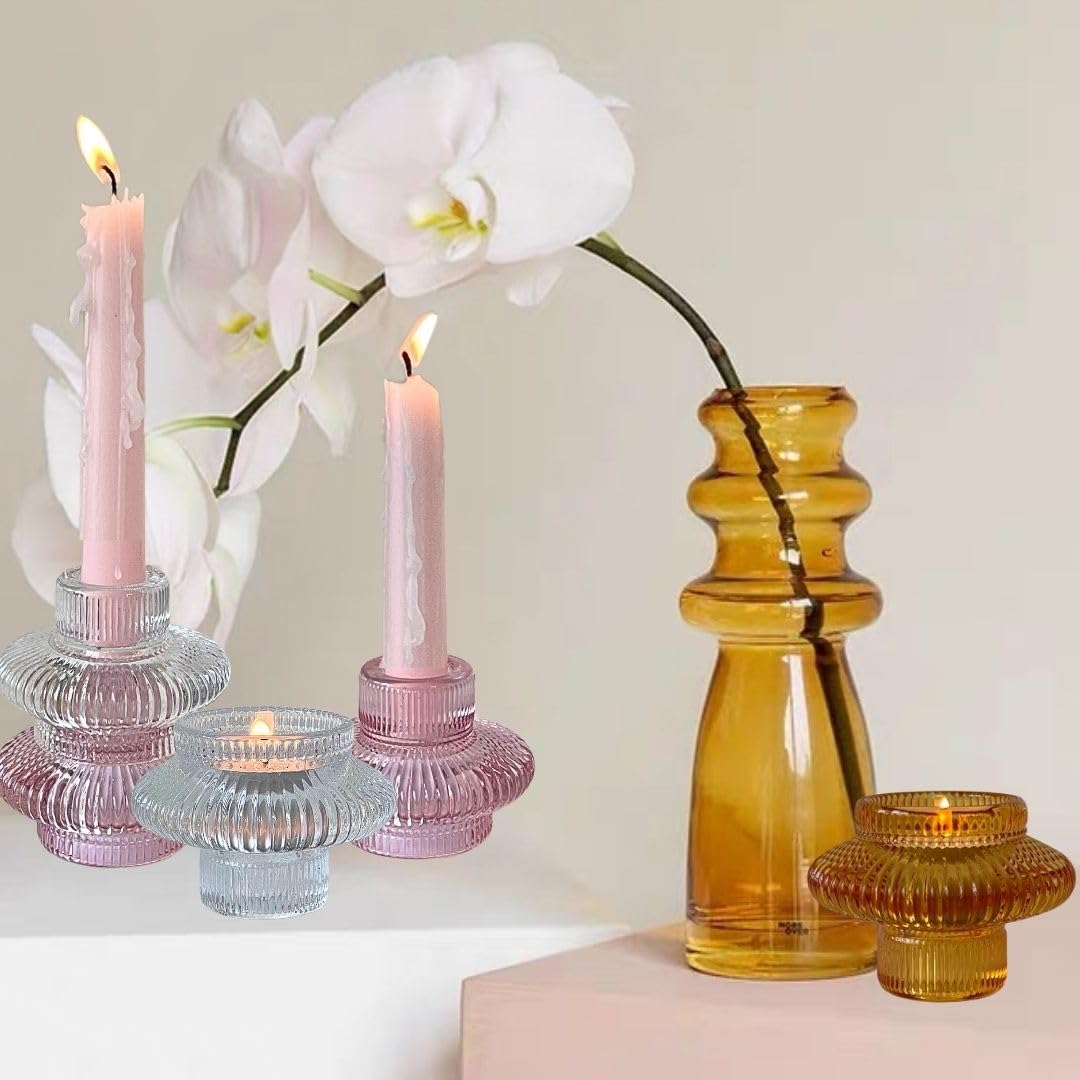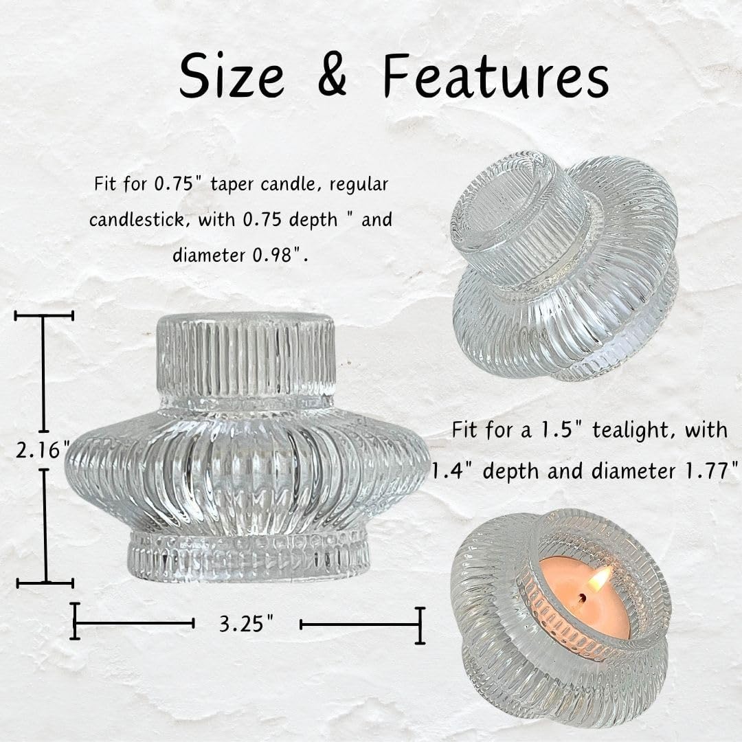 Dual-Sided Clear Glass Candlestick Holders for Tapered & Tealight Candles - Ideal for Weddings & Home Decor