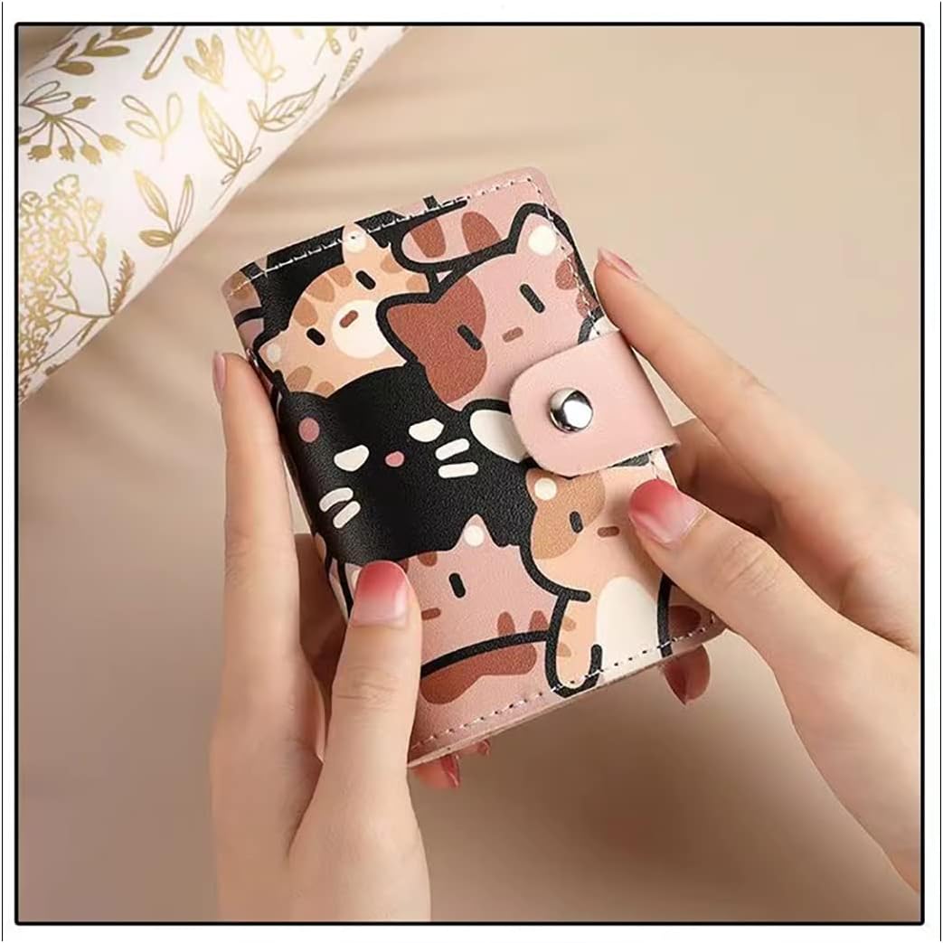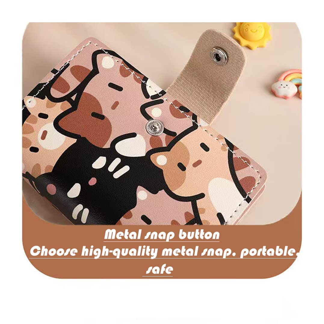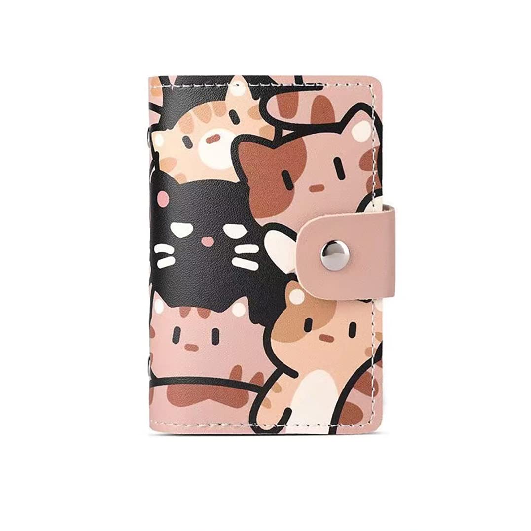 Experience the blend of functionality and charm with our Kawaii Cat RFID Credit Card Holder! Meticulously designed to strike a balance between a card case and a wallet, it houses 28 distinct card slots, ensuring that your essentials - from credit cards, passports, ID cards, to cash and coins - remain secure and organized. Forget about heavy wallets; with dimensions of 4.3 inches in length and 3.2 inches in width (11 cm x 8.1 cm), this lightweight, compact card holder ensures convenience on the go. Adorned with an endearing cat pattern, it's a must-have for cat aficionados. Beyond functionality, its high-quality PU leather construction coupled with a secure metal snap closure promises durability and style. Whether you're off to school, embarking on a weekend hike, shopping, or simply out for leisure, it's tailored to accompany you. Plus, its enchanting design makes it an ideal gift choice for cat lovers, girlfriends, students, and anyone with an appreciation for cute accessories. Note: The product may exhibit slight variations in color due to monitor or light settings and may have a faint new product scent, which dissipates after a few days.