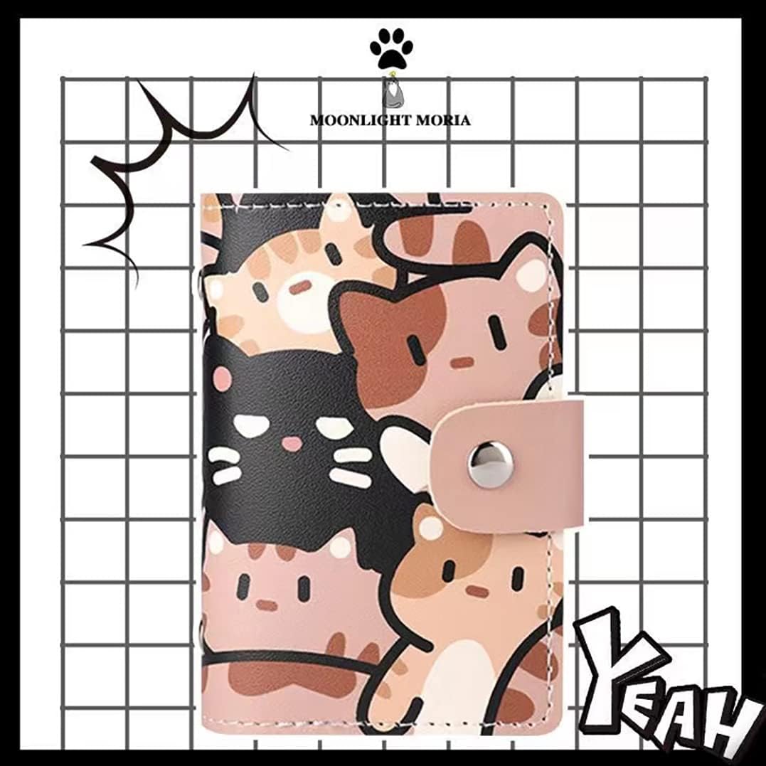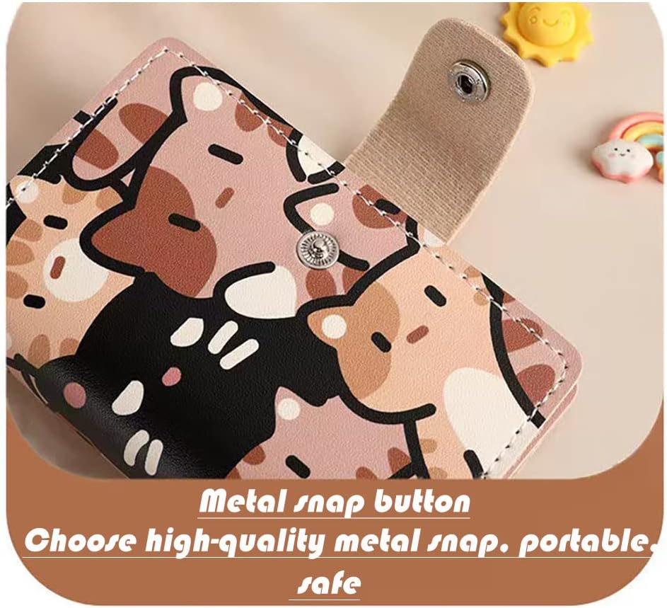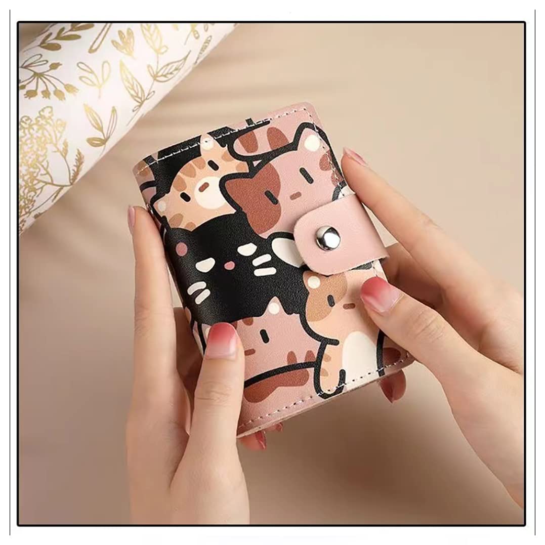 Experience the blend of functionality and charm with our Kawaii Cat RFID Credit Card Holder! Meticulously designed to strike a balance between a card case and a wallet, it houses 28 distinct card slots, ensuring that your essentials - from credit cards, passports, ID cards, to cash and coins - remain secure and organized. Forget about heavy wallets; with dimensions of 4.3 inches in length and 3.2 inches in width (11 cm x 8.1 cm), this lightweight, compact card holder ensures convenience on the go. Adorned with an endearing cat pattern, it's a must-have for cat aficionados. Beyond functionality, its high-quality PU leather construction coupled with a secure metal snap closure promises durability and style. Whether you're off to school, embarking on a weekend hike, shopping, or simply out for leisure, it's tailored to accompany you. Plus, its enchanting design makes it an ideal gift choice for cat lovers, girlfriends, students, and anyone with an appreciation for cute accessories. Note: The product may exhibit slight variations in color due to monitor or light settings and may have a faint new product scent, which dissipates after a few days.