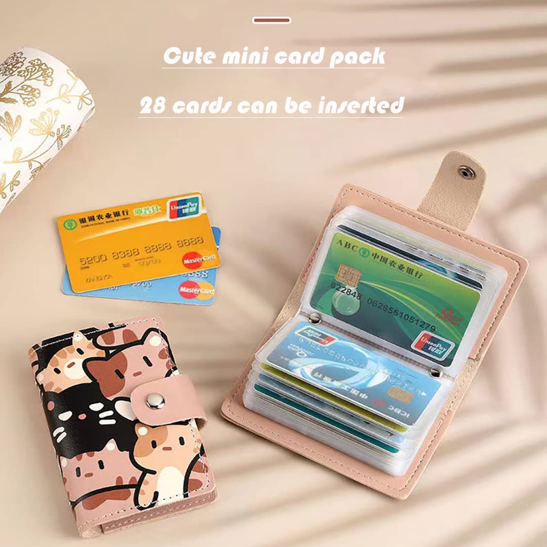 Kawaii Cat RFID Card Holder: 28 Slots, Compact & Cute Design for Women