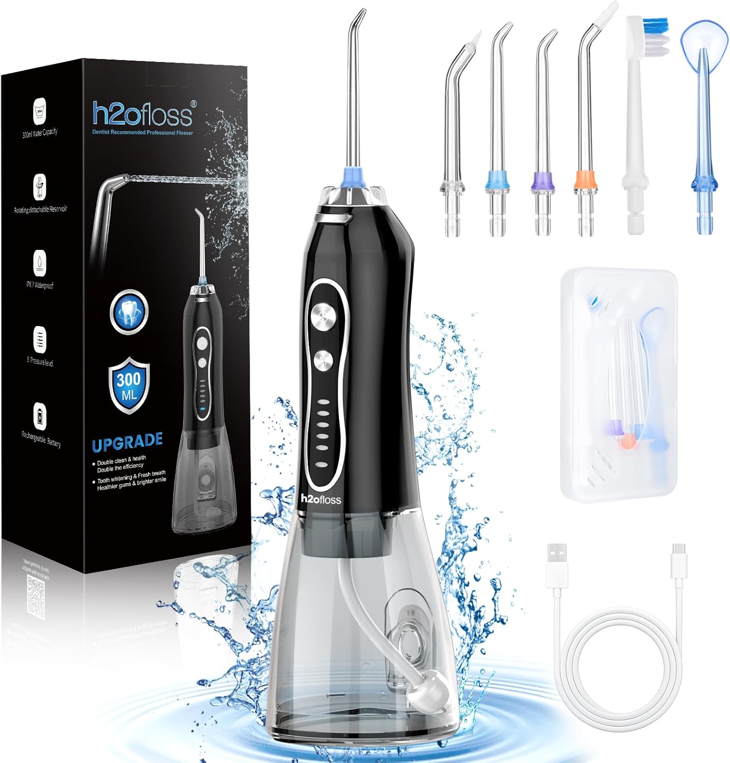 Portable Water Dental Flosser with 5 Modes - Cordless, Rechargeable, Waterproof, 300ml Tank for Home & Travel