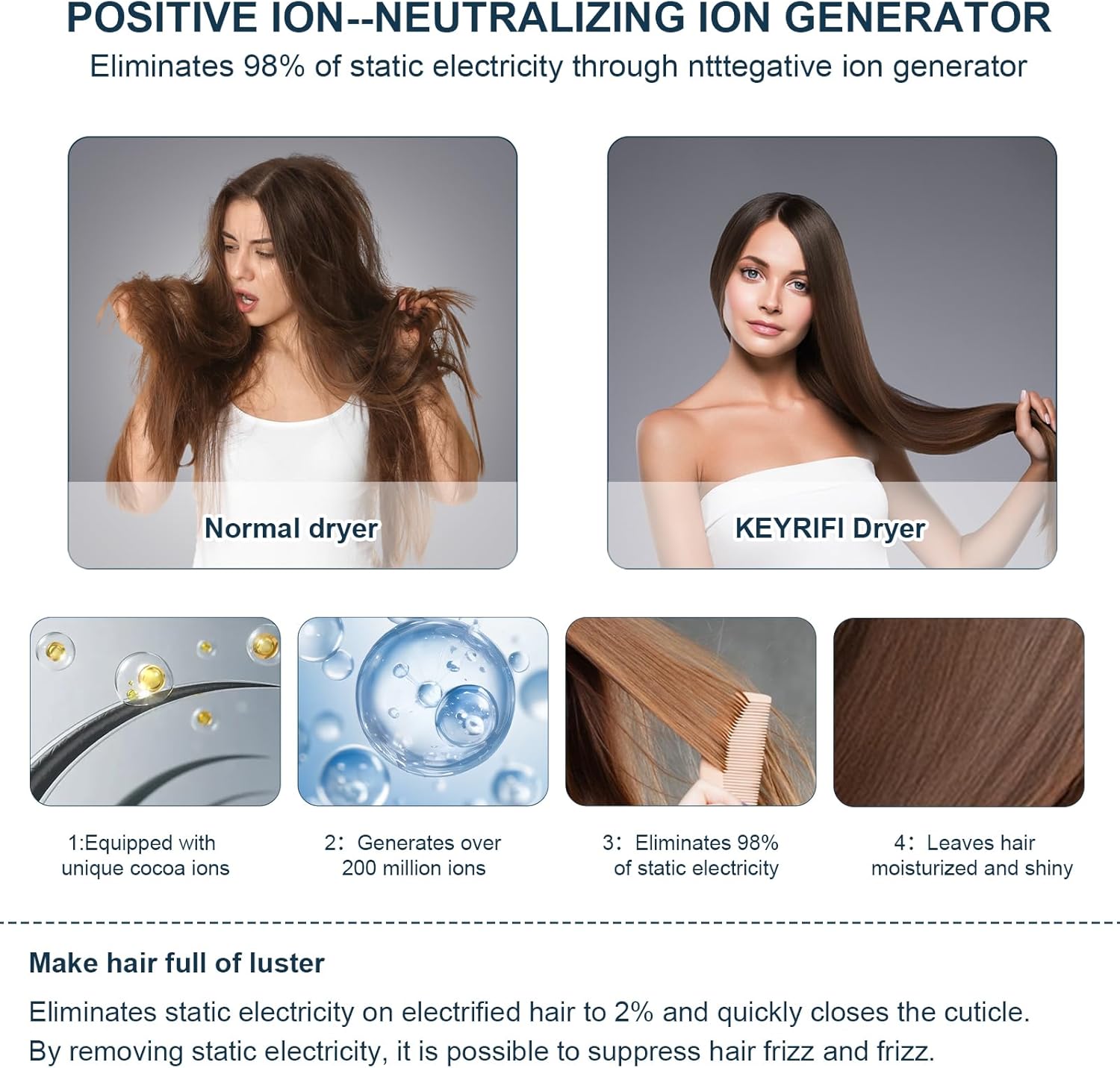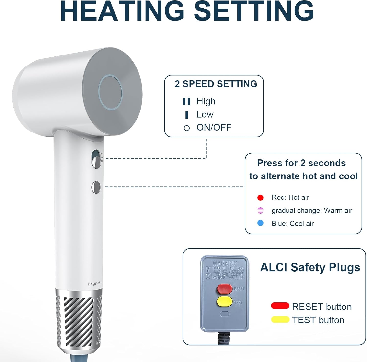 Noise is minimized thanks to eight layers of advanced noise reduction technology, ensuring the operation stays quieter than 50dB. Safety is a top priority with a built-in PI level sound-absorbing material and an UL-certified US ALCI safety plug, ensuring a secure and comfortable drying experience. Whether you're prepping for a day at work, styling for a night out, or caring for a client’s hair, this hair dryer combines power, efficiency, and safety to help you achieve the perfect hairstyle effortlessly.