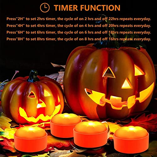 - 10-Key Remote: 2 Modes and 4 Timers - A 10-key remote control allows you to operate the LED pumpkin candle lights within 20ft (6m) sensitively - sets a 2/4/6/8 hours timer and it will light up again at the same time the next day. One remote control can control all lights at the same time. - Two modes: FLICKER (flicker effect) & STEADY (steady glow).