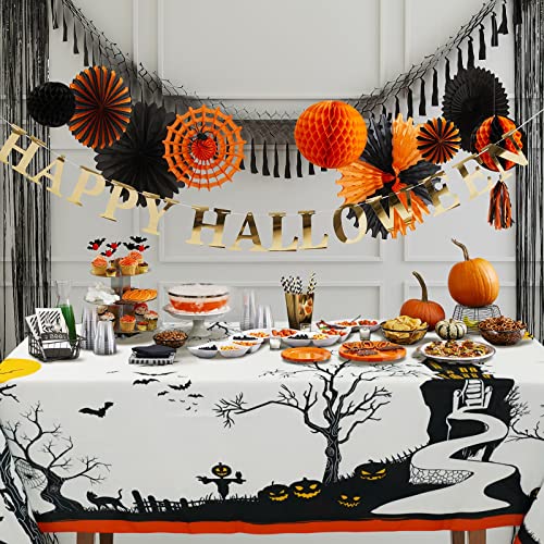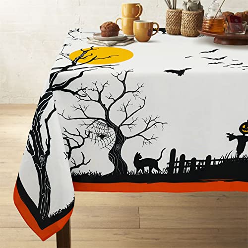 Waterproof 60 x 102 Inch Halloween Tablecloth - Pumpkin and Spider Web Design, Wrinkle Resistant, Washable Table Cover for Indoor & Outdoor Parties