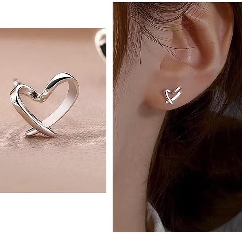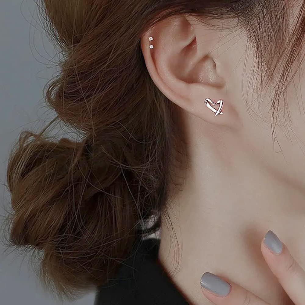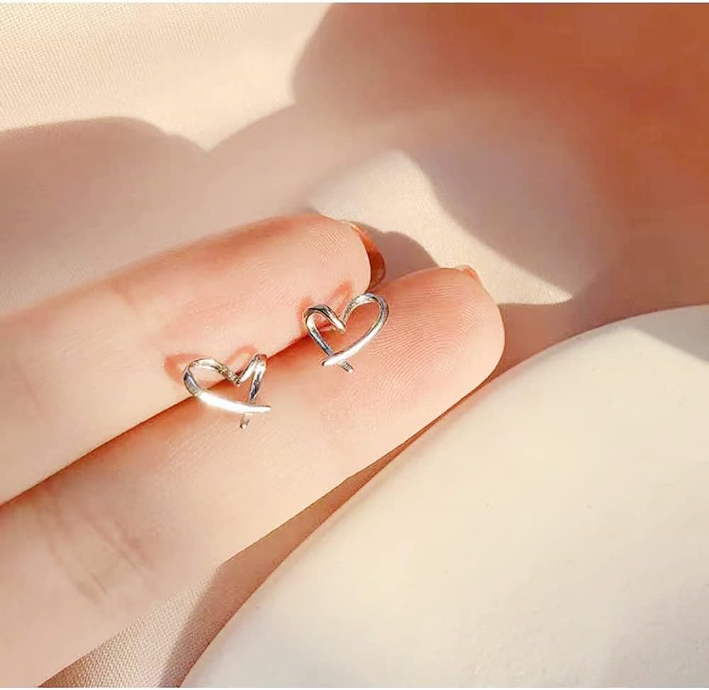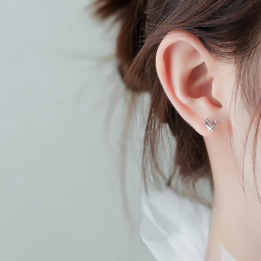 Heart Silver Stud Earrings for Women, Hypoallergenic Tiny Love Hearted Jewelry