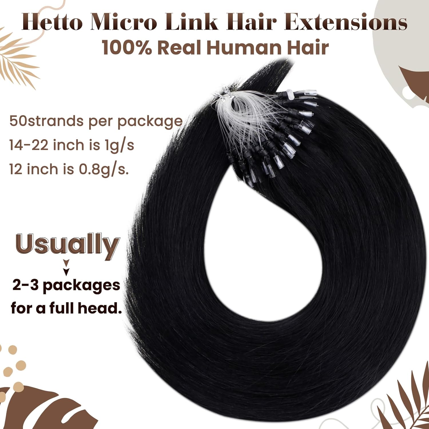 Premium 40g, 50 Strands Black Micro Link Hair Extensions, 12-inch