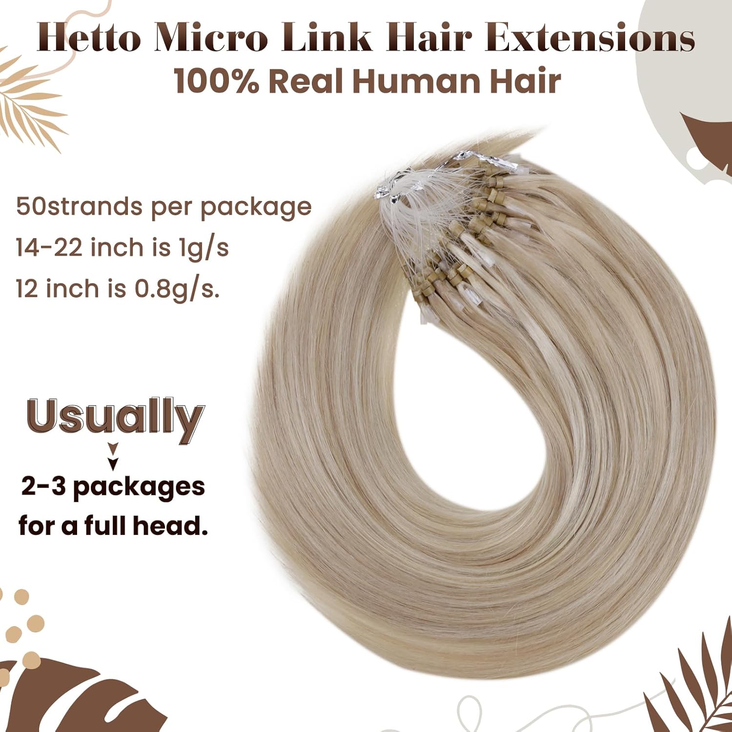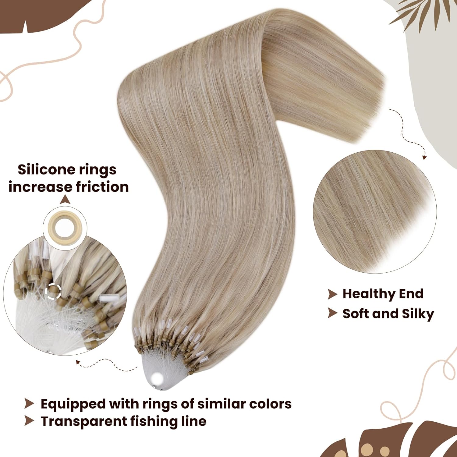Premium 40g, 50 Strands Mixed Ash & Bleach Blonde Micro Link Hair Extensions, 12-inch