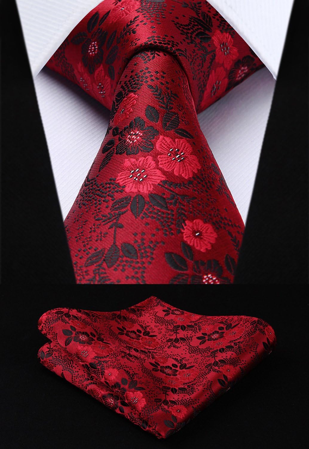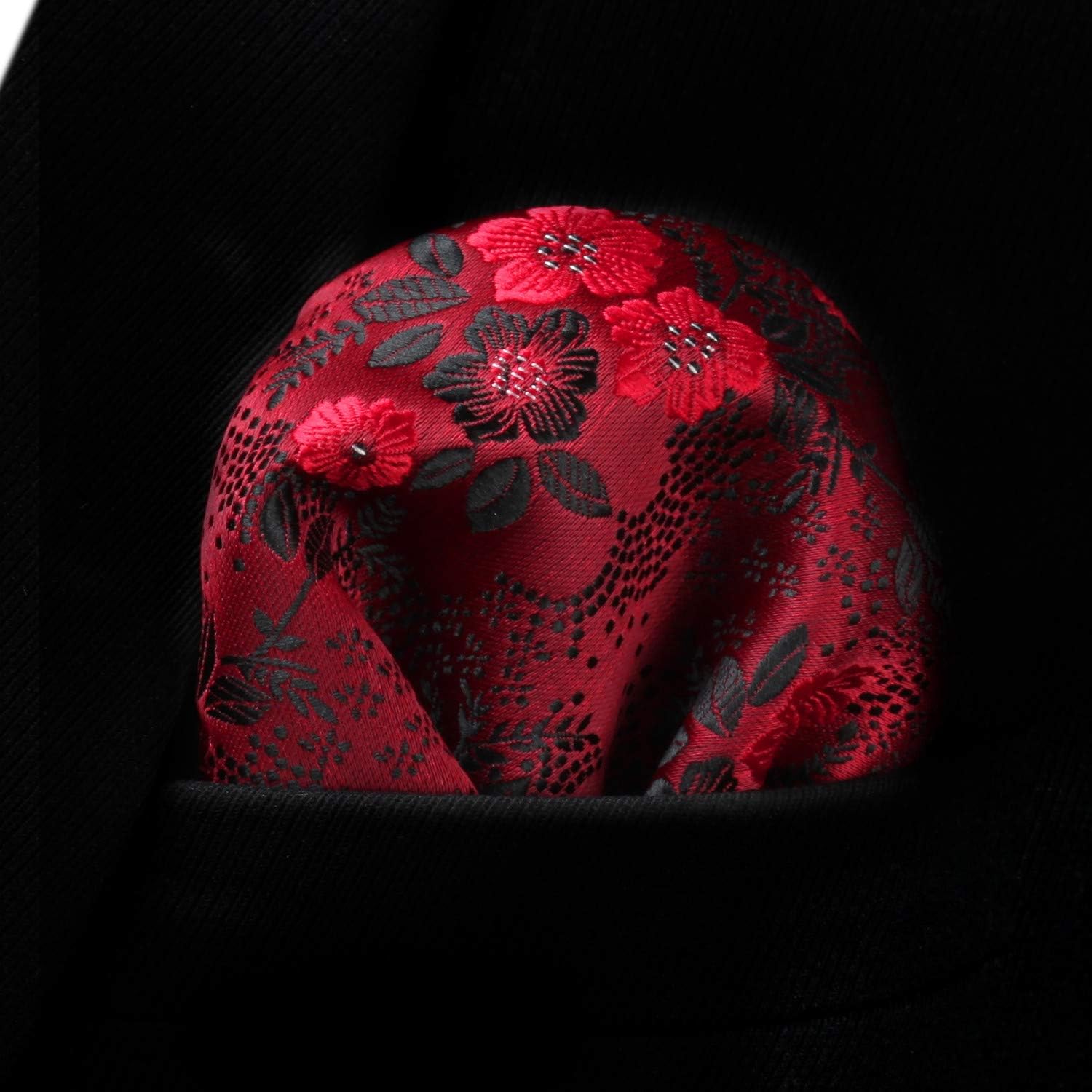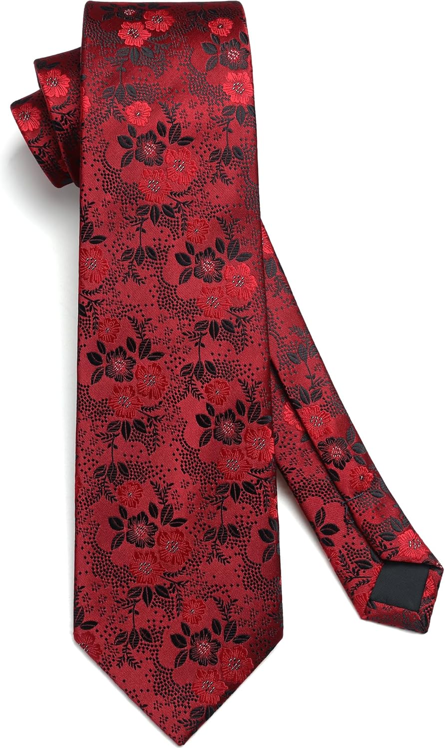 Burgundy Floral Silk Tie & Handkerchief Set for Men - Perfect for Formal Events & Holidays