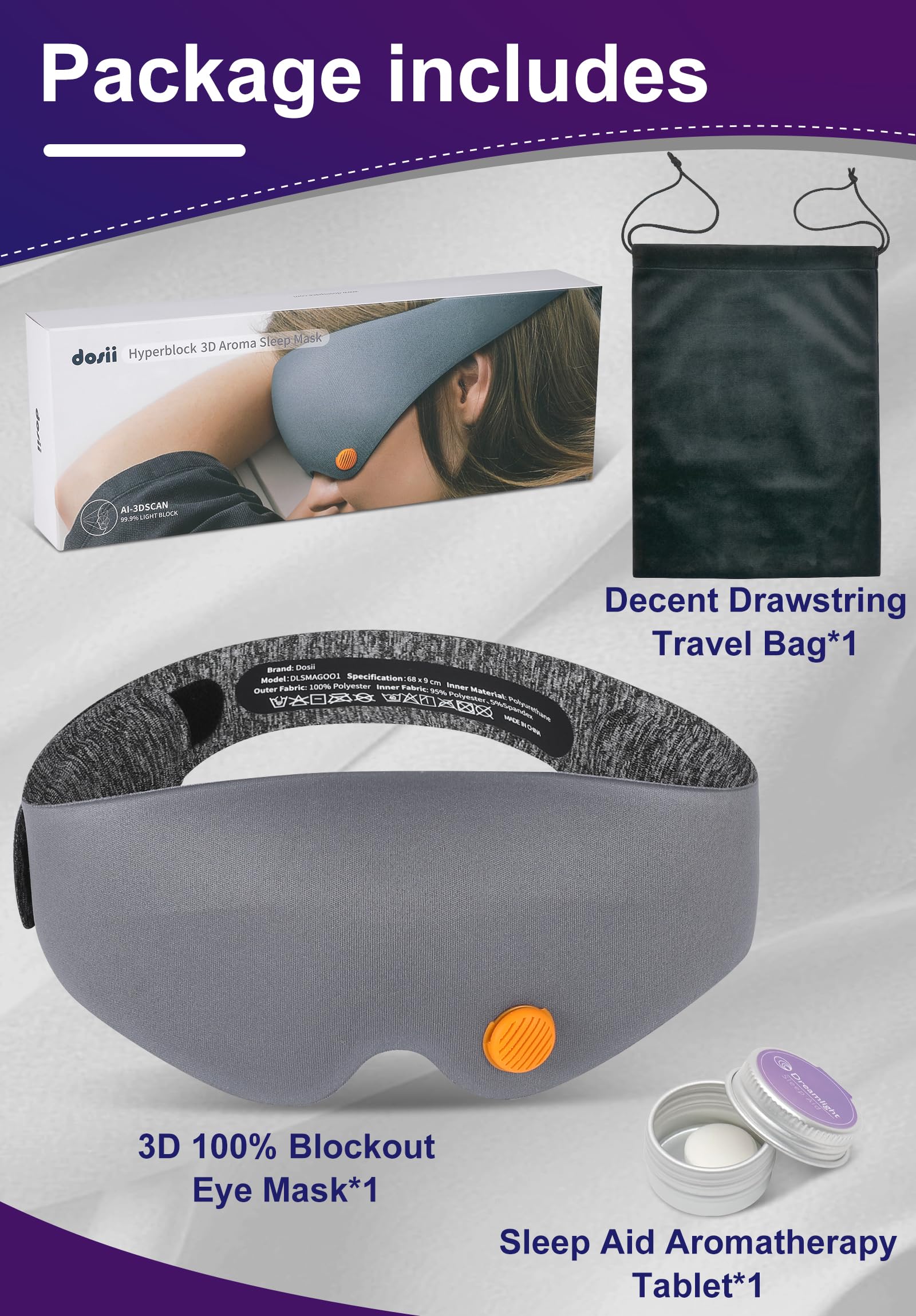 Hyperblock 3D Aroma Sleep Mask: Complete Blackout Aromatherapy Eye Mask, Ultra-Soft, Adjustable Velcro, Lightweight Comfort, 3D Technology Design, Includes Velvet Travel Pouch & Aroma Pellet