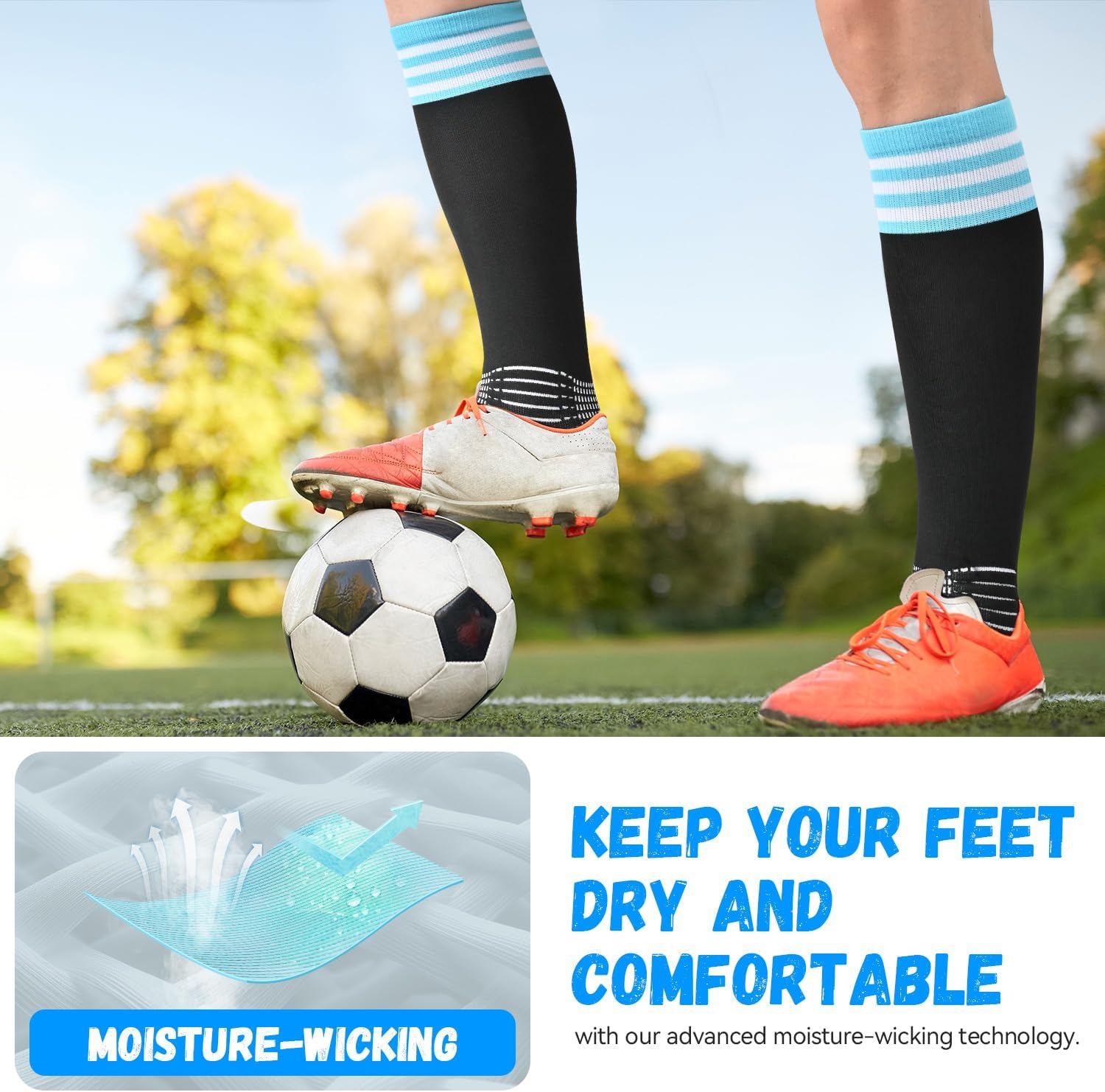 Boost Your Game: Compressive Large Soccer Socks with Coolmax Moisture Control and Ankle Support