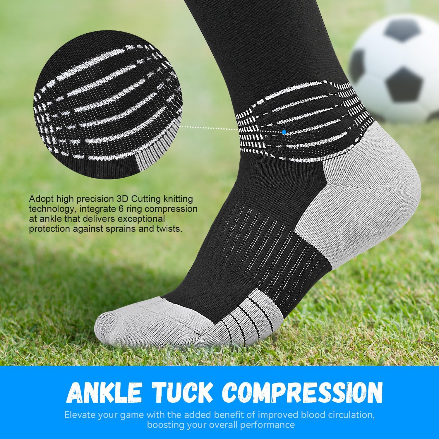Boost Your Game: Compressive Extra Small Soccer Socks with Coolmax Moisture Control and Ankle Support