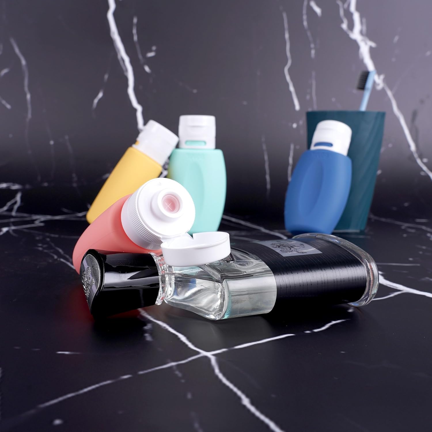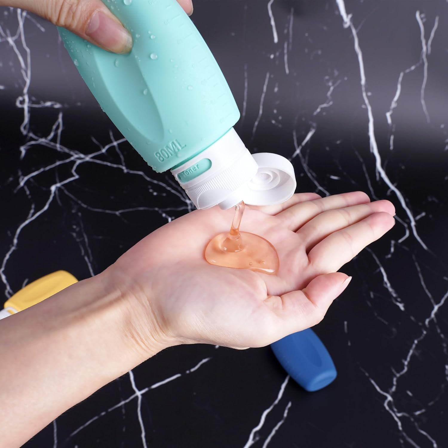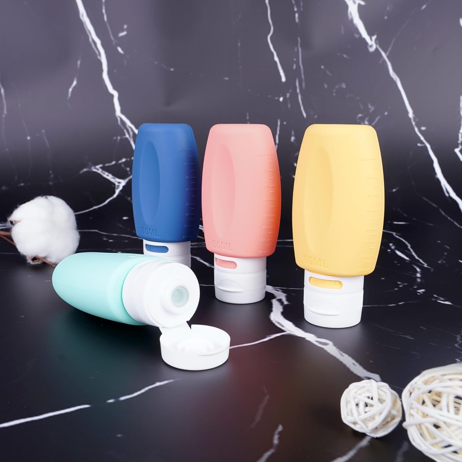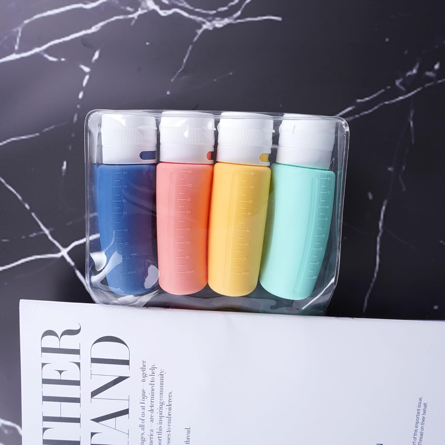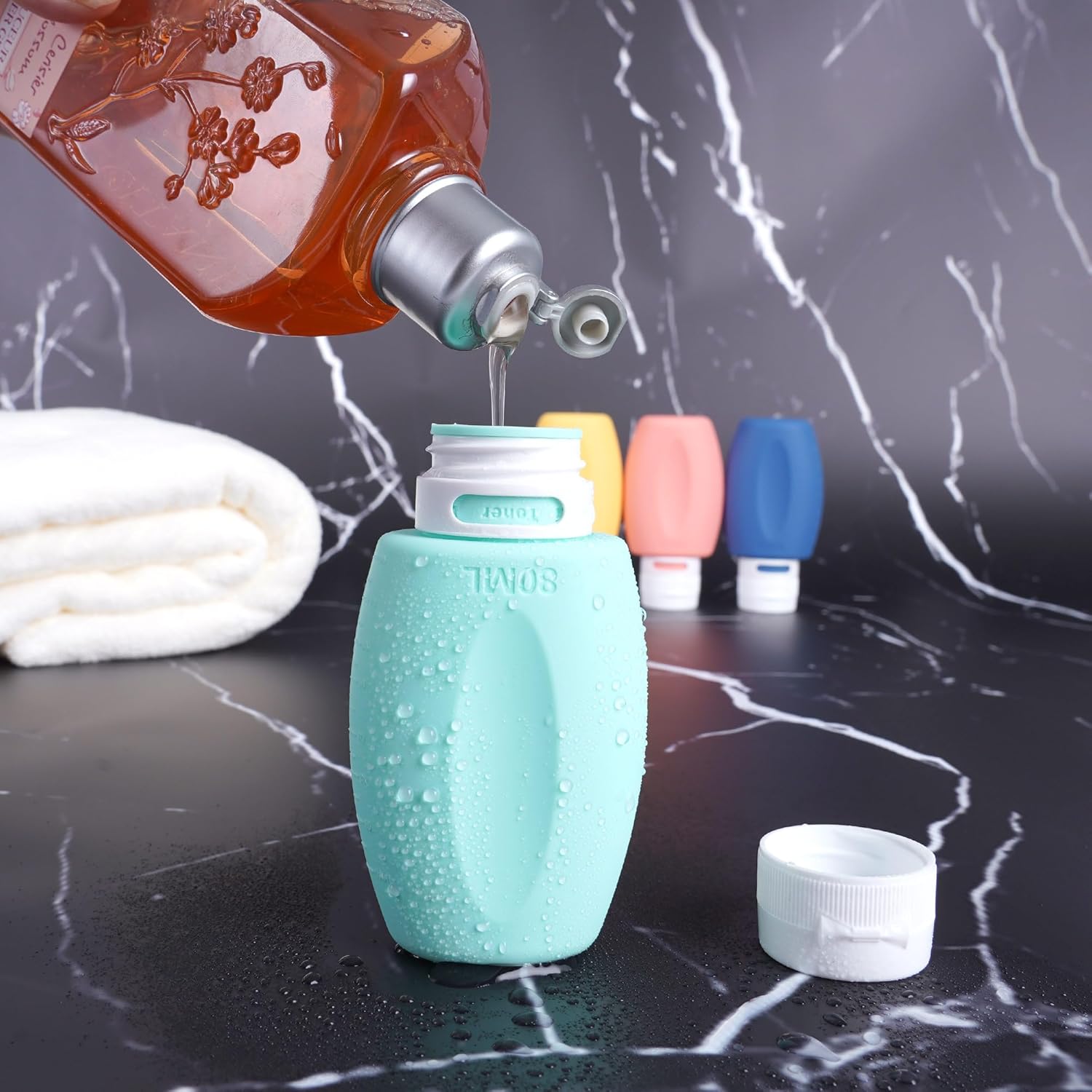 Travel Toiletry Bottles 3oz 4 Pack, TSA Approved Leakproof Silicone Containers