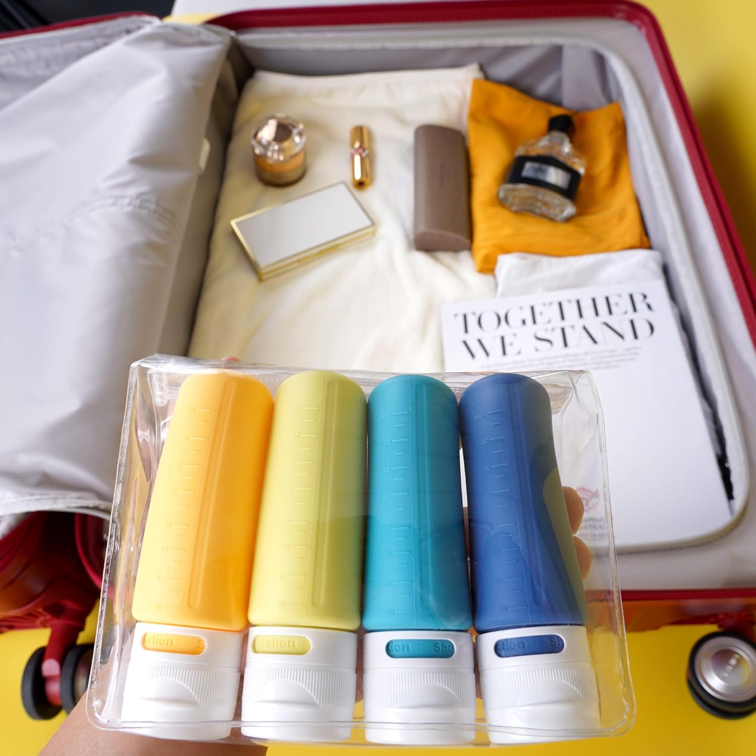 Travel Toiletry Bottles 3oz 4 Pack, TSA Approved Leakproof Silicone Containers