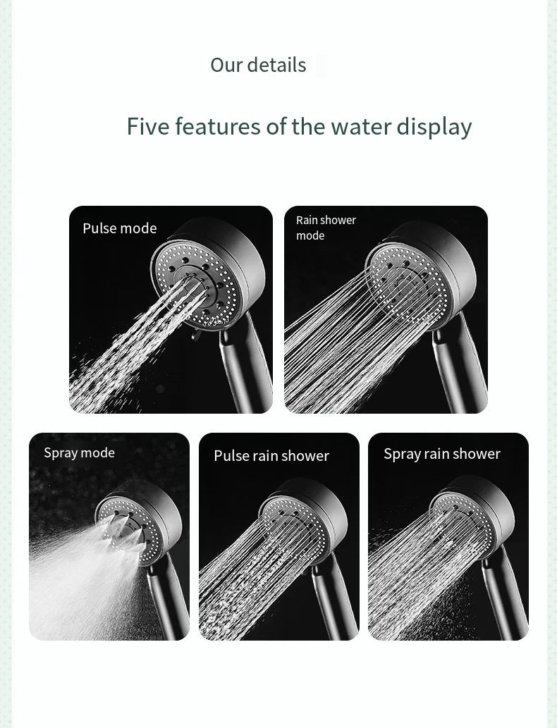 High Pressure 5-Mode Handheld Shower Head Easy Installation