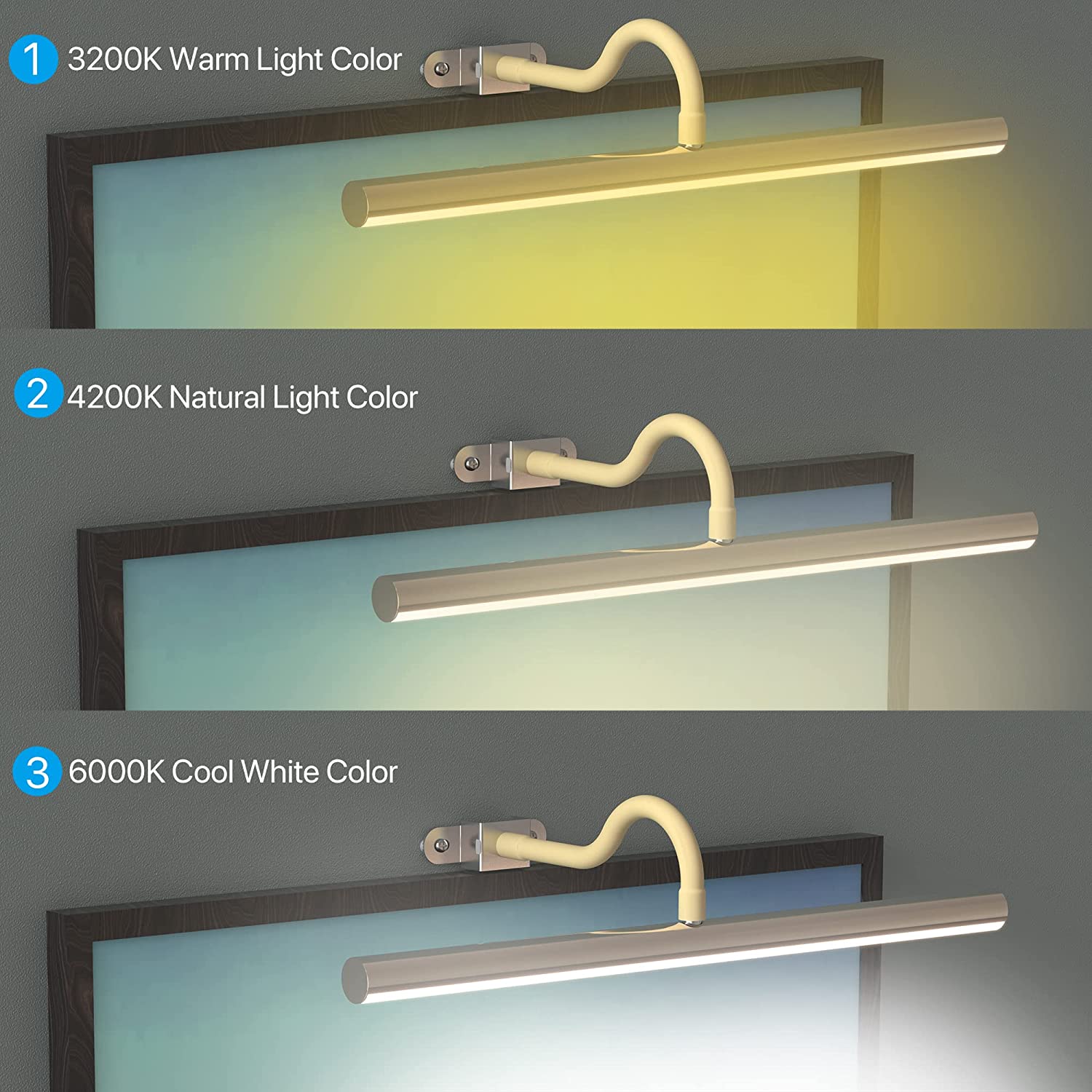 【Multi-function Key Controller Adjustment】 Our LED picture light comes with 300 Lumens and 144pcs super-bright LED lights, with a choice of 3200K warm light, 4200K natural light, and 6000K white light. Using the multi-function key controller, you can easily adjust the brightness level and light color as you wish. The key controller also allows for easy on/off control.