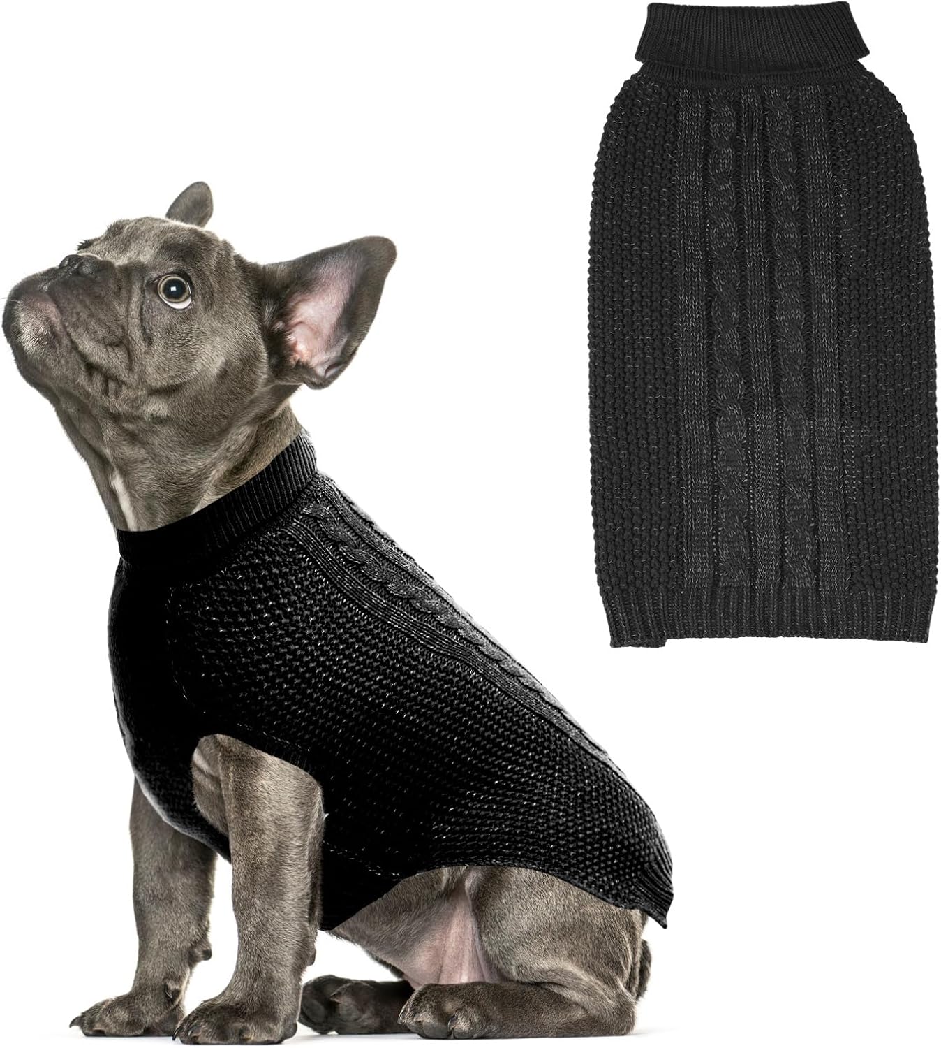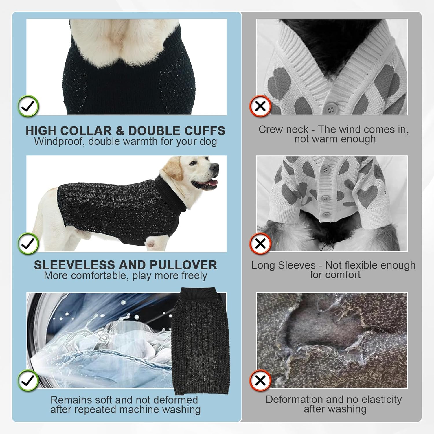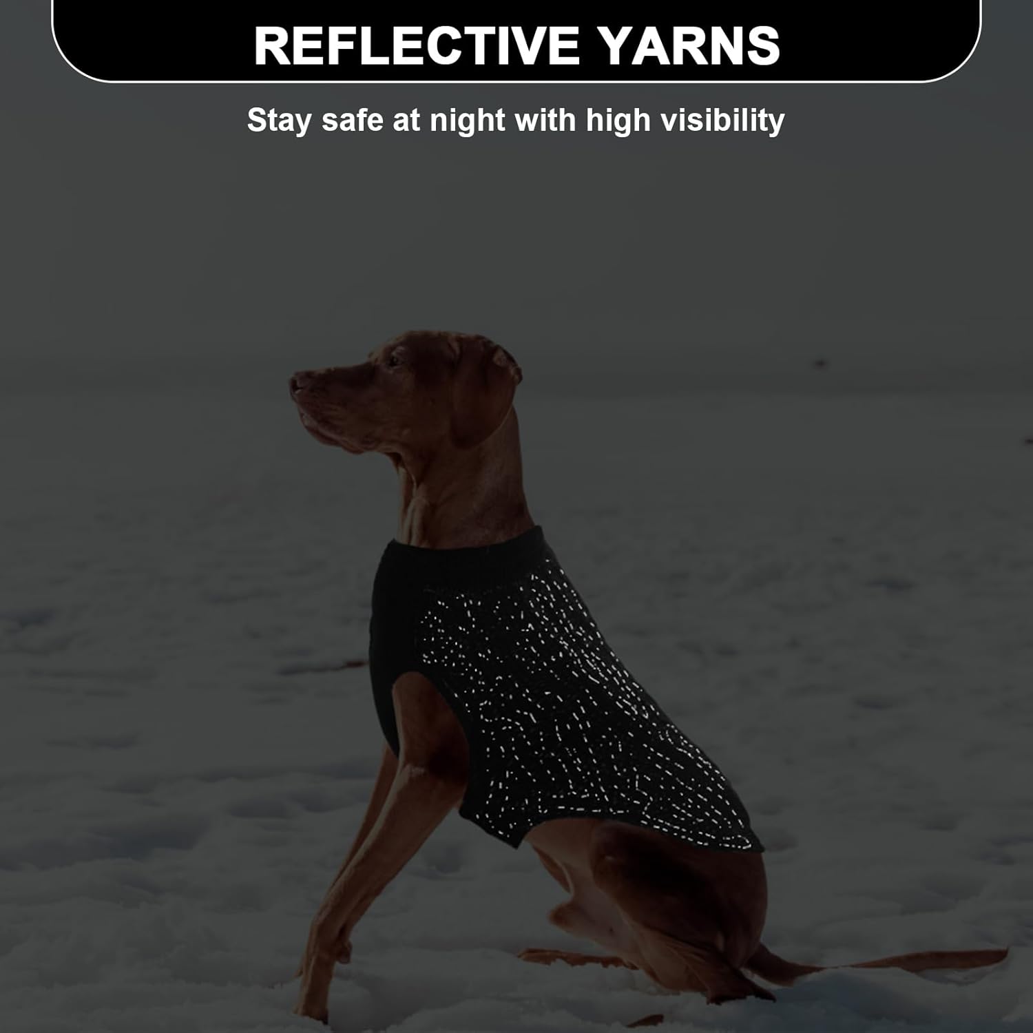 Reflective Black Cable Knit Dog Sweaters, XS Size - Ideal for Night Safety & Cold Weather Comfort